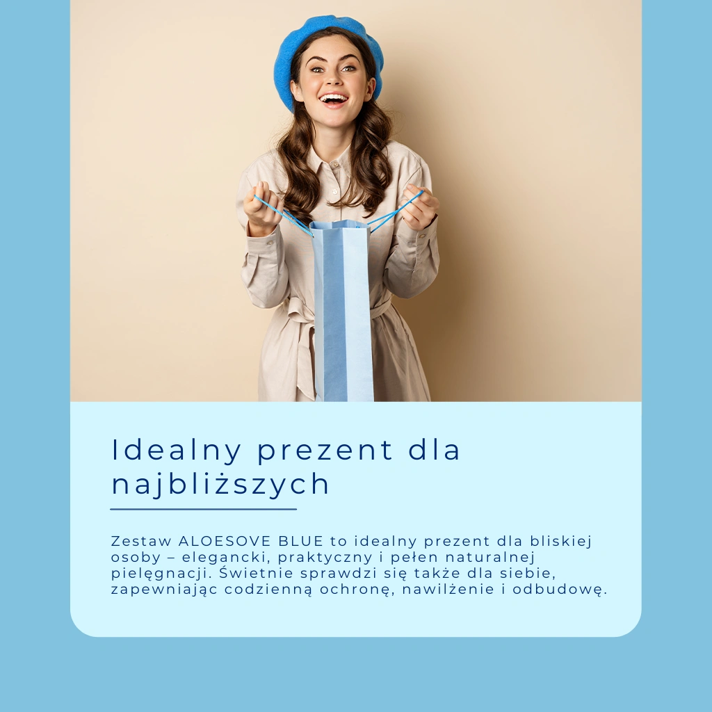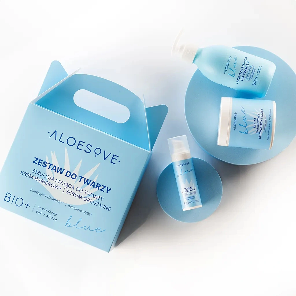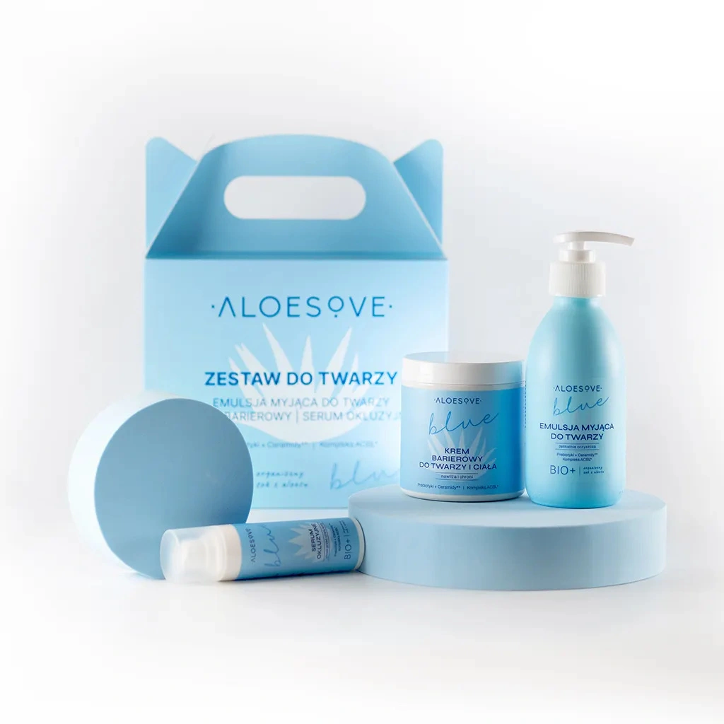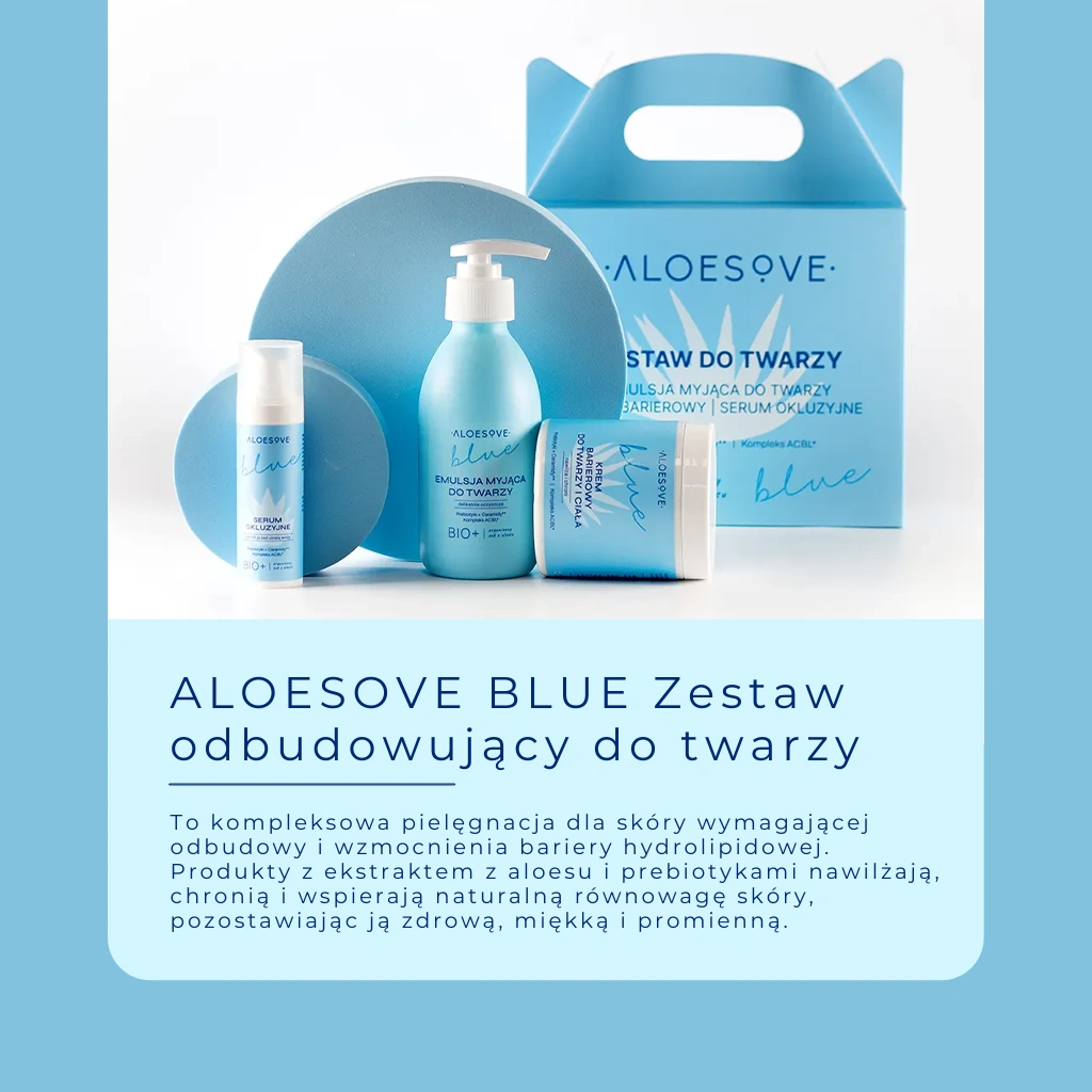 Zestaw ALOESOVE BLUE to kompleksowa pielęgnacja, która dba o równowagę i zdrowie skóry każdego dnia. Jeśli szukasz sposobu na wzmocnienie i odbudowę swojej skóry, ten zestaw spełni Twoje oczekiwania! To również doskonały pomysł na prezent dla bliskiej osoby.