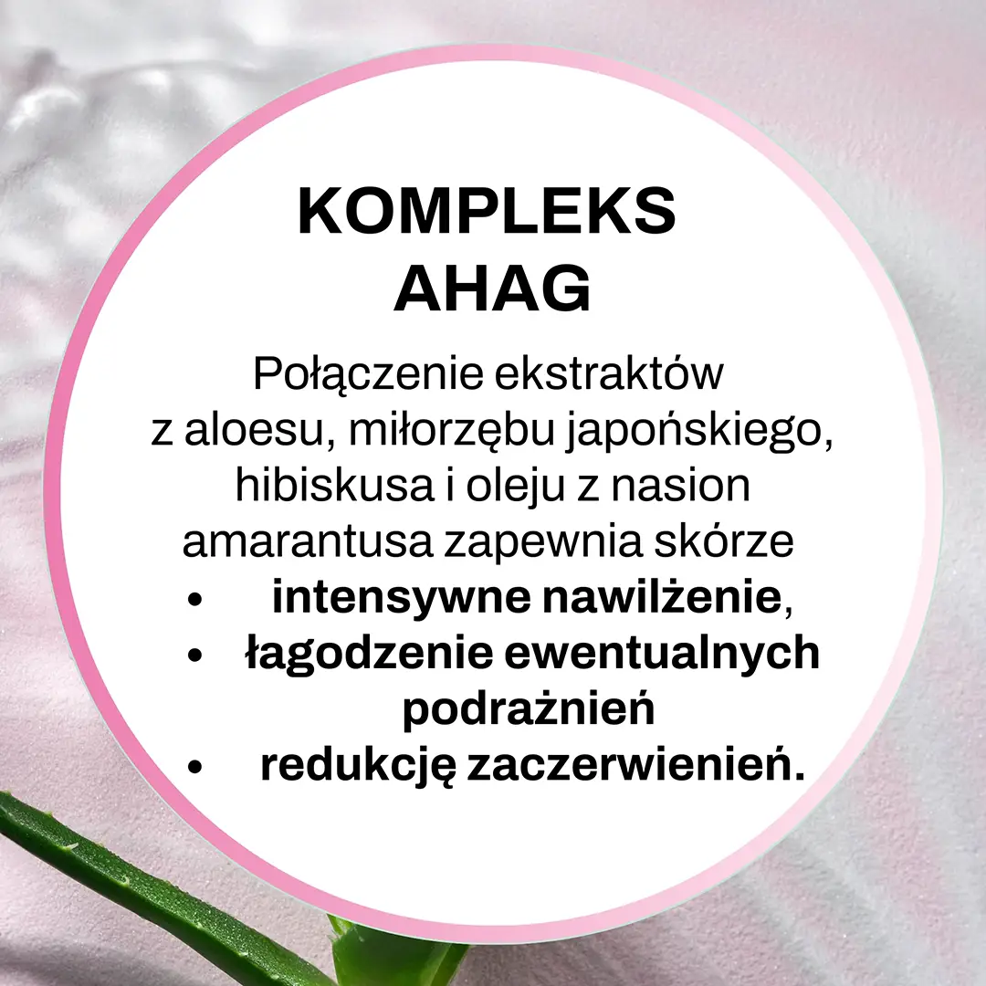 Nawilżający krem do twarzy na dzień z SPF30 zapewnia kompleksową ochronę i pielęgnację każdego typu cery. Zawiera filtry przeciwsłoneczne chroniące przed promieniowaniem UVA i UVB. Kompleks AHAG, czyli połączenie ekstraktów z aloesu, miłorzębu japońskiego, hibiskusa i oleju z nasion amarantusa, zapewnia skórze intensywne nawilżenie, łagodzenie ewentualnych podrażnień i redukcję zaczerwienień.