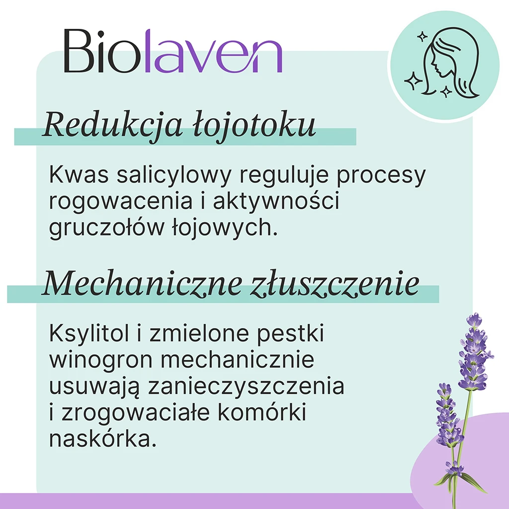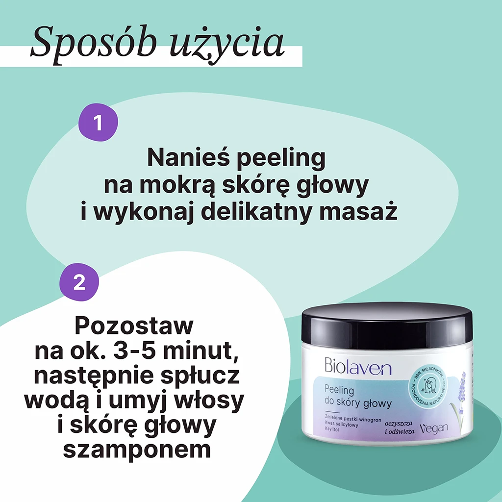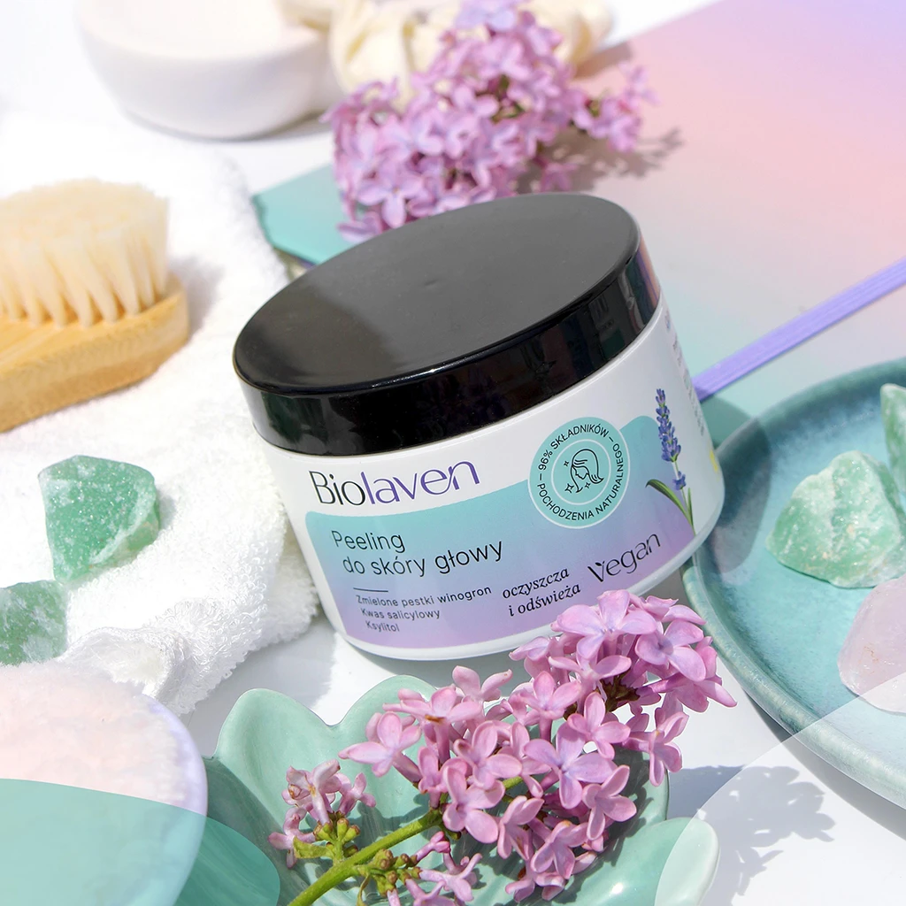 Odświeżający, cukrowy peeling do skóry głowy z ksylitolem, zmielonymi pestkami winogron i kwasem salicylowym. Delikatnie złuszcza i skutecznie oczyszcza, redukując przy tym nadmiar sebum. Odżywia i stymuluje cebulki włosów do szybszego wzrostu. Oleje z pestek winogron, laurowy i rycynowy oraz oliwa z oliwek dodatkowo odżywiają i wygładzają włosy. Systematyczne stosowanie peelingu gwarantuje poprawę kondycji skóry głowy i w efekcie stan włosów. Doskonały do pielęgnacji każdego rodzaju skóry głowy, szczególnie tłustej z łupieżem.