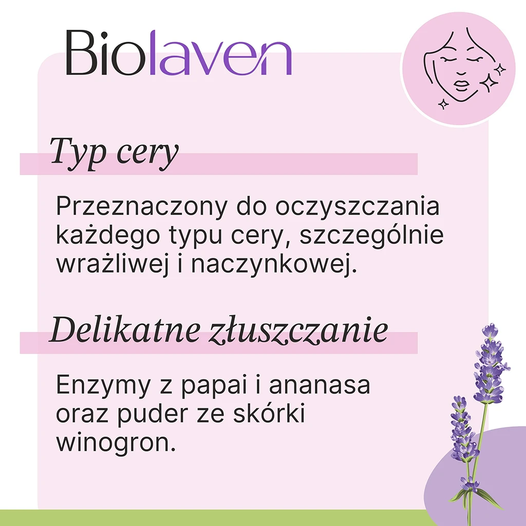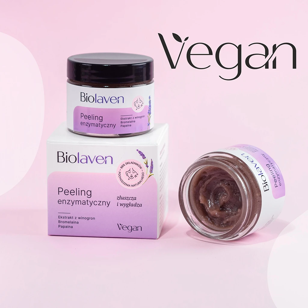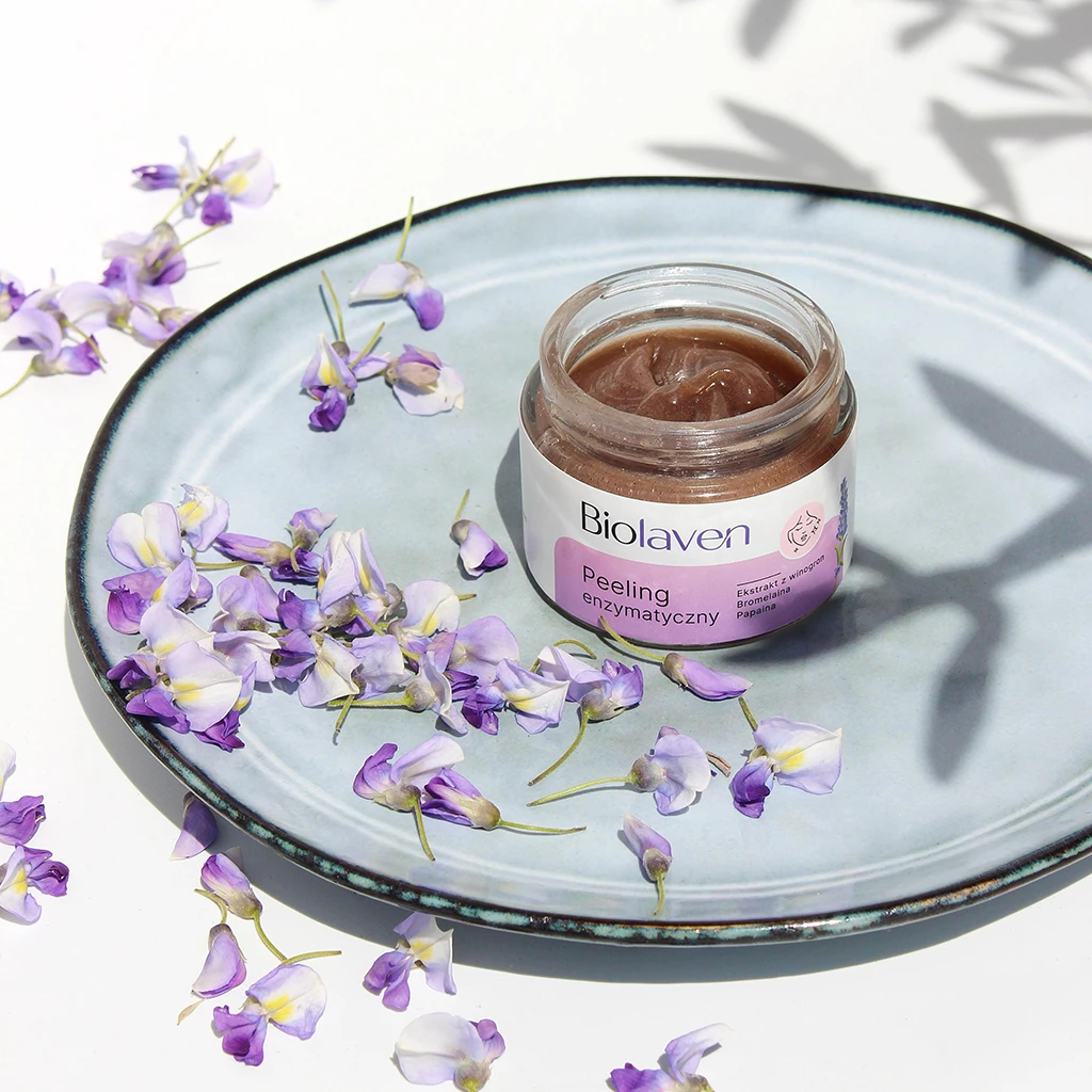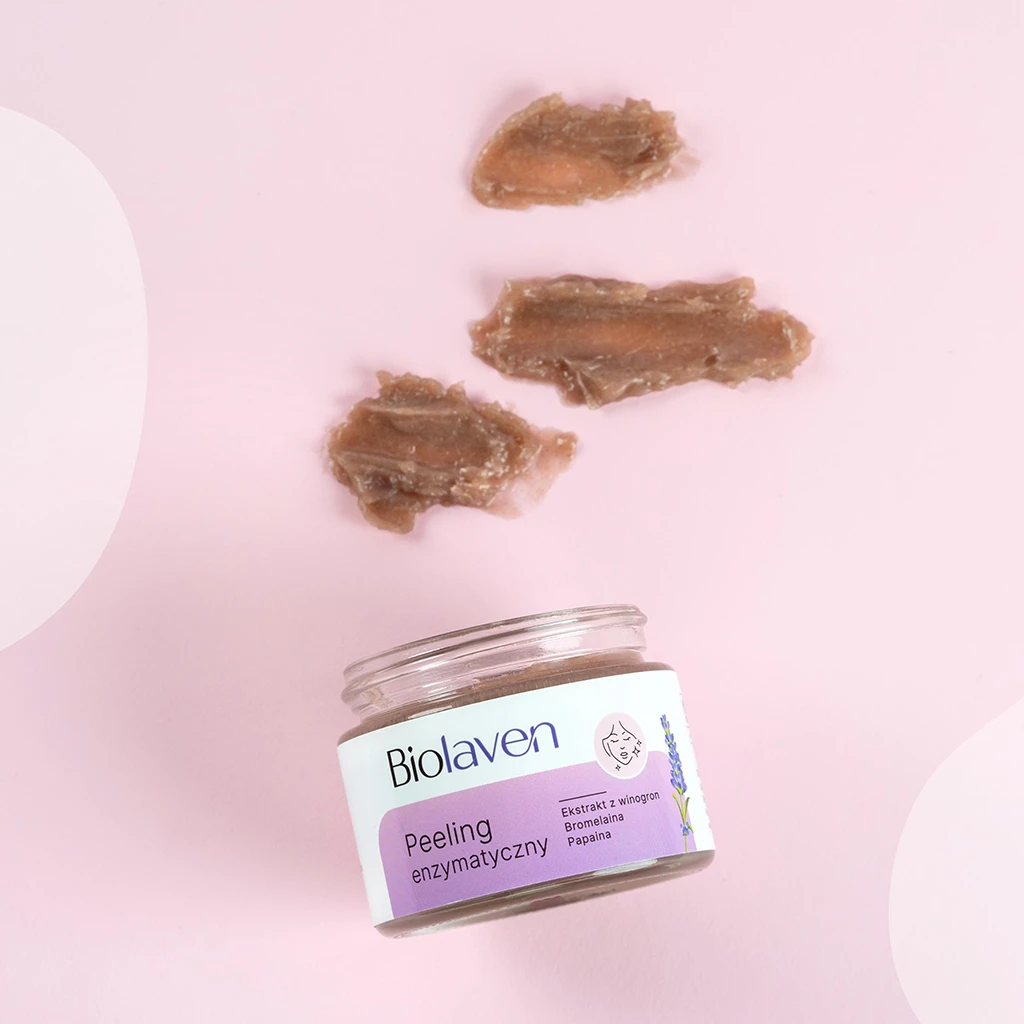 Peeling enzymatyczny to skuteczny i jednocześnie najdelikatniejszy sposób na złuszczenie martwego naskórka. Zabieg ten możemy wykonać zarówno w domowym zaciszu, jak i salonie kosmetycznym. Peeling enzymatyczny marki BIOLAVEN można stosować przy niemal każdym rodzaju skóry, natomiast szczególnie polecany jest osobom z cerą wrażliwą i naczyniową. Warto dodać, że skuteczny jest także przy walce z trądzikiem. Jeśli chcemy uzyskać efekt zdrowej, elastycznej i przede wszystkim młodszej skóry, powinniśmy go stosować 1-2 razy w tygodniu.
