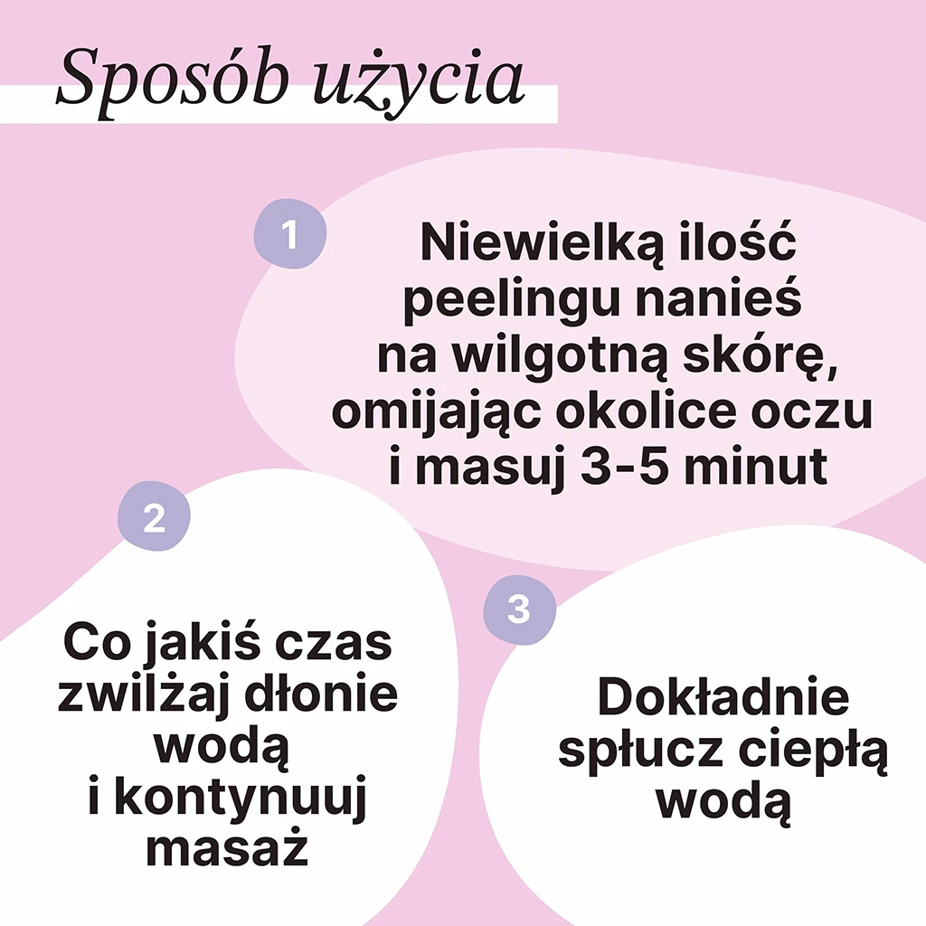 Bezwodny preparat działa złuszczająco dzięki zawartości enzymów papainy i bromelainy, które aktywują się w momencie połączenia z wodą. Delikatna formuła, łatwa w aplikacji sprawia, że peeling może być stosowany nawet przy najbardziej wymagających i wrażliwych cerach. Skutecznie usuwa martwe komórki naskórka, wygładza i wyrównuje koloryt skóry.