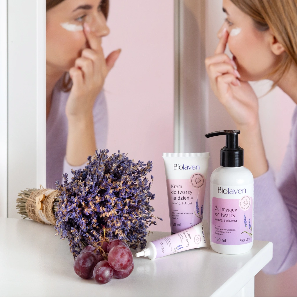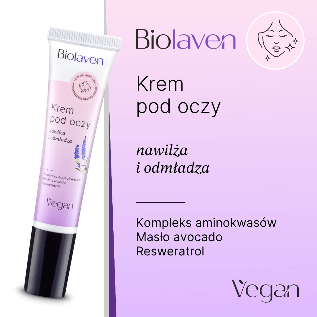 - BIOLAVEN Krem pod oczy – intensywnie pielęgnuje delikatną skórę wokół oczu, redukując oznaki zmęczenia i zapewniając odpowiedni stopień nawilżenia.