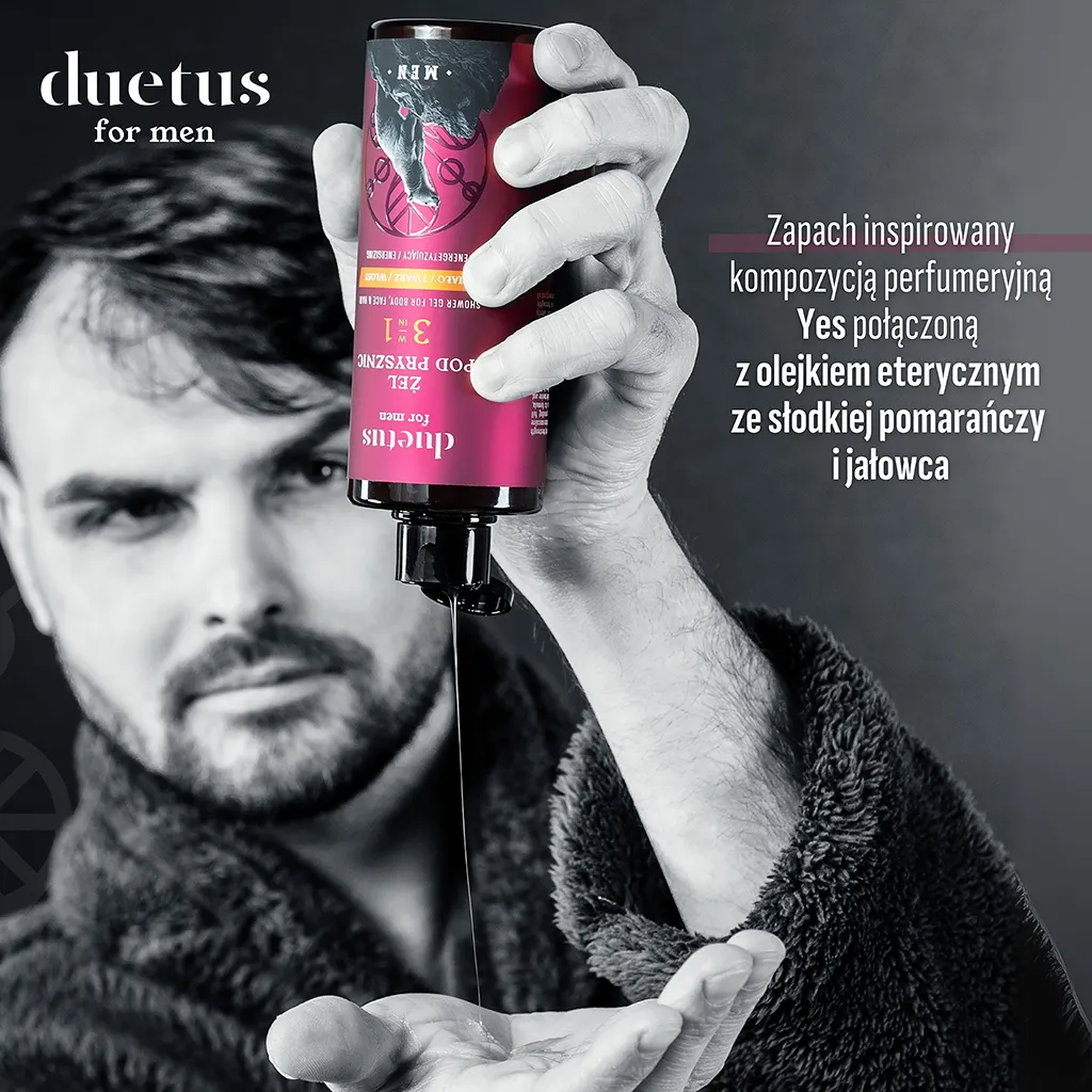 Energetyzujący żel pod prysznic, inspirowany siłą i niezależnością niedźwiedzia, łączy męską determinację z elegancją, zapewniając pełne orzeźwienie i odświeżenie. Jego formuła, wzbogacona o aktywne składniki – taurynę i kofeinę, skutecznie oczyszcza twarz, ciało i włosy, pozostawiając skórę gładką, a włosy pełne energii. Zmysłowy zapach, pełen pewności siebie, otula Cię, budując poczucie siły i gotowości do stawiania czoła wyzwaniom dnia.