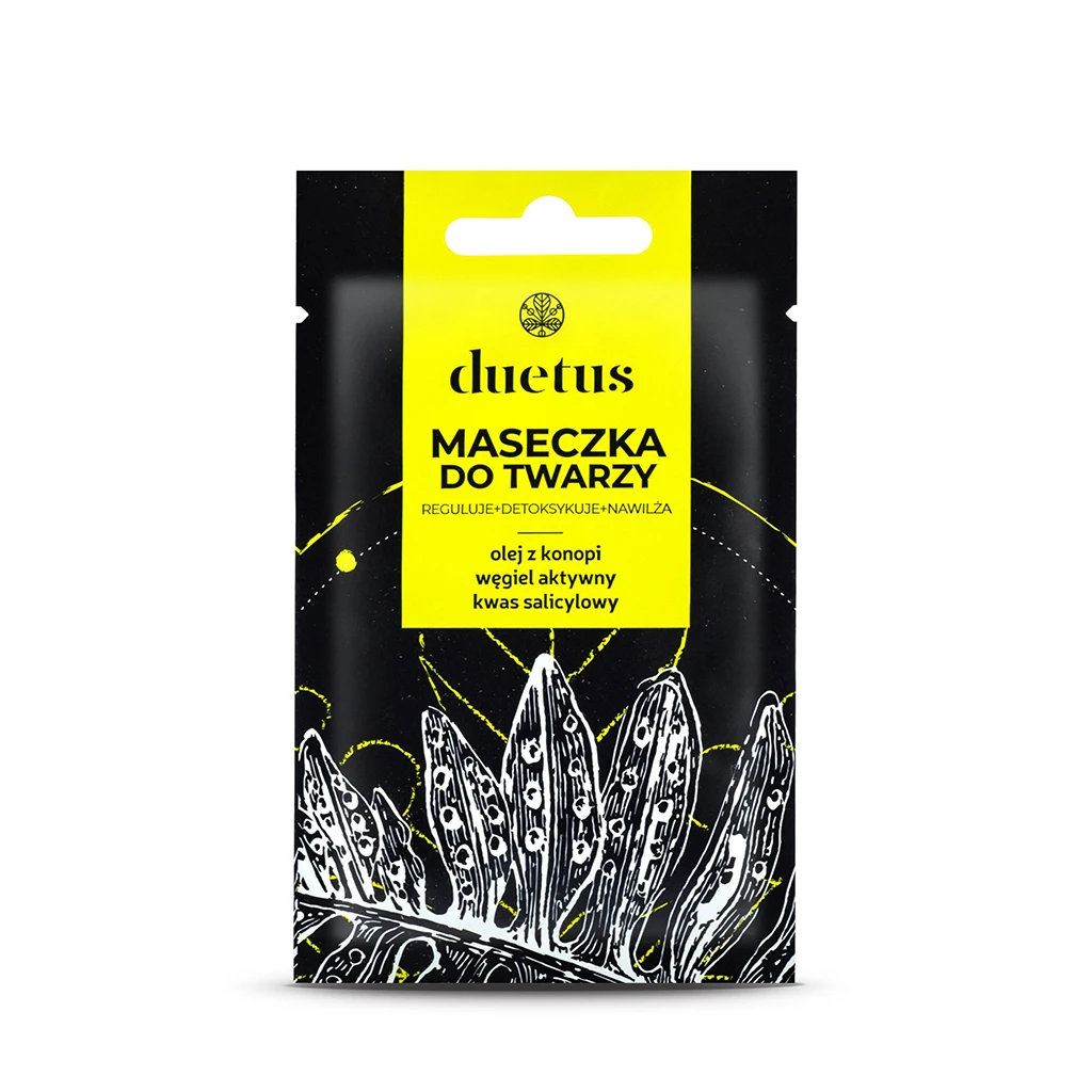 Maseczka do twarzy przeznaczona do zaawansowanej pielęgnacji cery mieszanej lub z niedoskonałościami. Glinka zielona i olej z konopi oczyszczają i zmniejszają pory, regulując proces wydzielania sebum. Zawarty w maseczce węgiel aktywny posiada zdolność przyciągania oraz pochłaniania toksyn i różnego rodzaju zanieczyszczeń. Kwas salicylowy dogłębnie oczyszcza i rozjaśnia powierzchowne przebarwienia. Ekstrakt z lukrecji gładkiej, sorbitol oraz olej z pestek winogron odpowiadają jednocześnie za utrzymanie odpowiedniego poziomu nawilżenia. Po zastosowaniu maseczki skóra staje się widocznie wygładzona, odświeżona i zmatowiona.