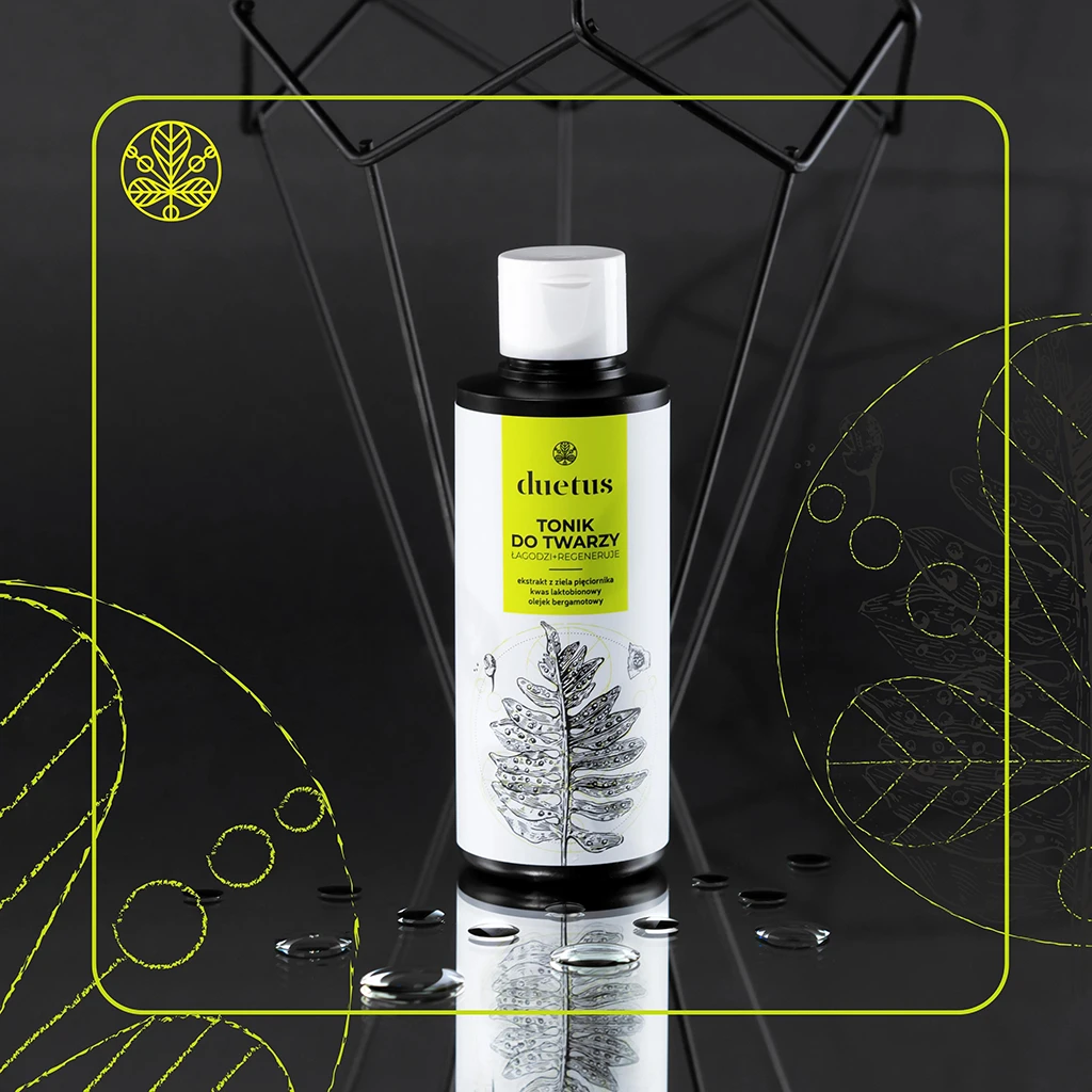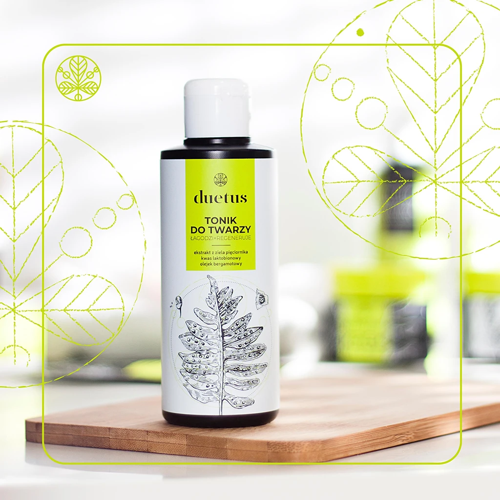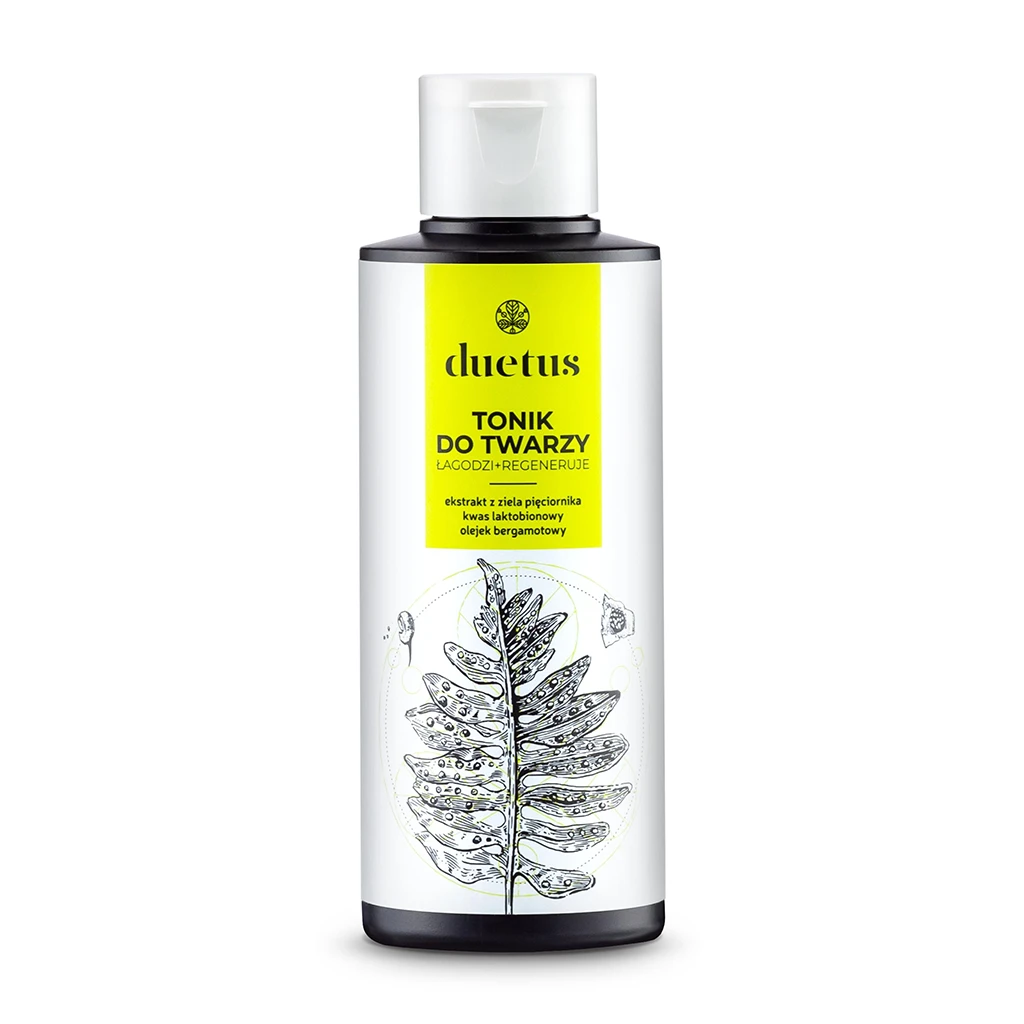 Łagodny tonik ziołowy przeznaczony do codziennej pielęgnacji cery mieszanej lub z niedoskonałościami. Zawiera ekstrakt z ziela pięciornika gęsiego o właściwościach ściągających, a przy tym regenerujących oraz regulujących wydzielanie sebum. Panthenol oraz kwas laktobionowy koją podrażnienia, chronią i przywracają skórze naturalną równowagę. Naturalny olejek eteryczny z bergamotki pozostawia uczucie czystości i świeżości.