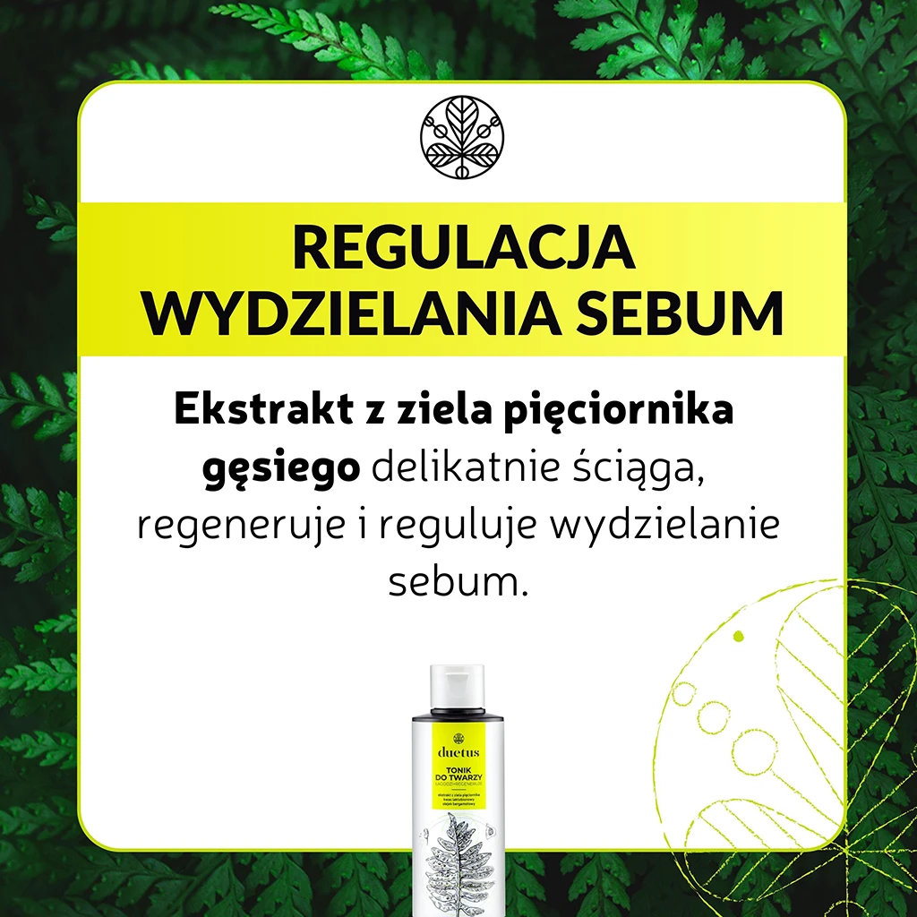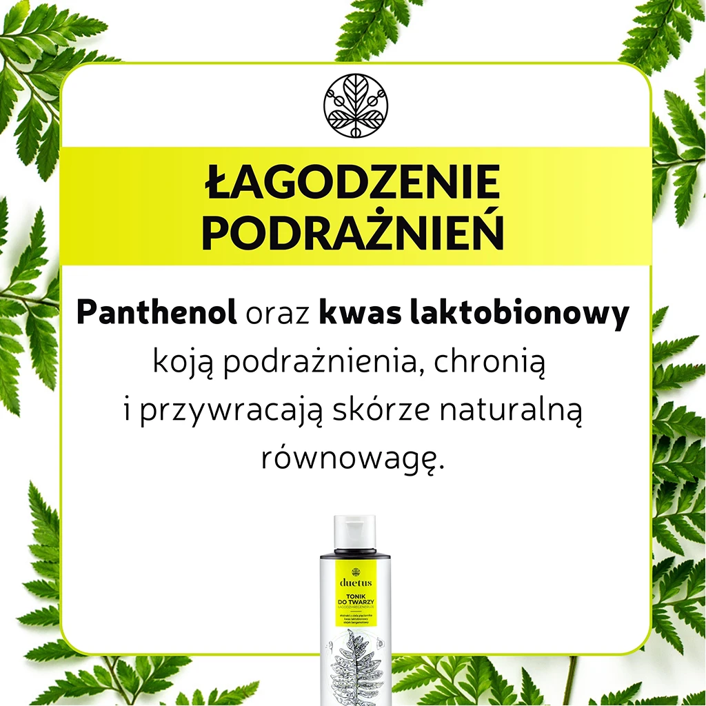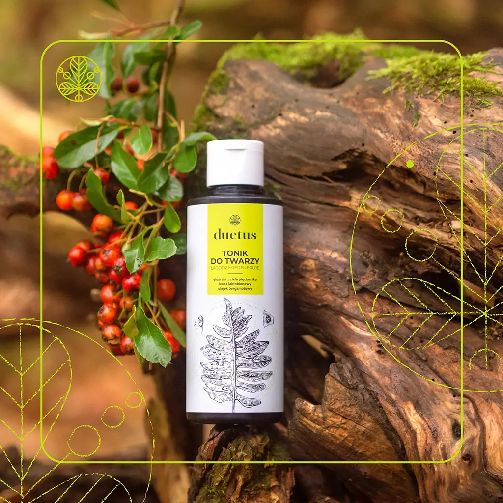 Łagodny tonik ziołowy przeznaczony do codziennej pielęgnacji cery mieszanej lub z niedoskonałościami. Zawiera ekstrakt z ziela pięciornika gęsiego o właściwościach ściągających, a przy tym regenerujących oraz regulujących wydzielanie sebum. Panthenol oraz kwas laktobionowy koją podrażnienia, chronią i przywracają skórze naturalną równowagę. Naturalny olejek eteryczny z bergamotki pozostawia uczucie czystości i świeżości.