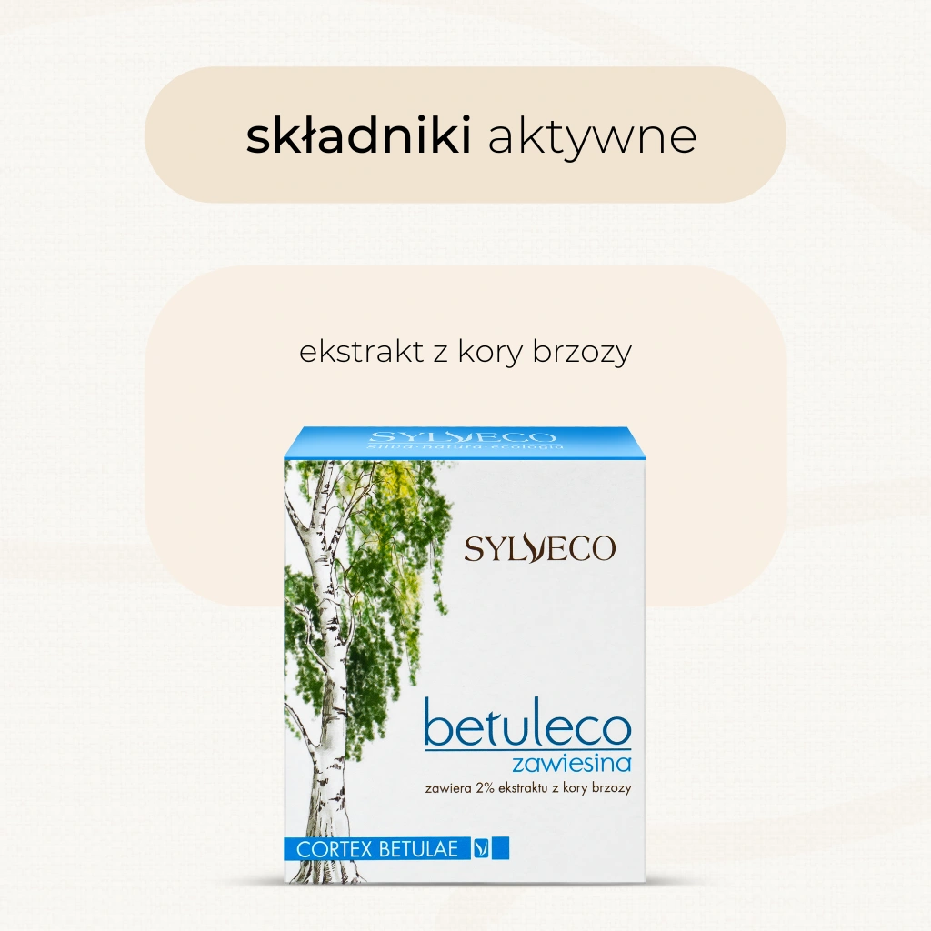 Betuleco jest preparatem zawierającym 2% ekstraktu z kory brzozy o działaniu przyspieszającym regenerację skóry. Może być stosowany do przemywania skóry trądzikowej, łojotokowej, a także z występującymi zmianami o podłożu alergicznym i niealergicznym. Substancje aktywne wyciągu z kory brzozy posiadają właściwości antybakteryjne i przeciwgrzybicze, wzmacniają strukturę włosów, stymulują cebulki do wzrostu. Betuleco można używać przy osłabionych i wypadających włosach, przy łupieżu łojotokowym.