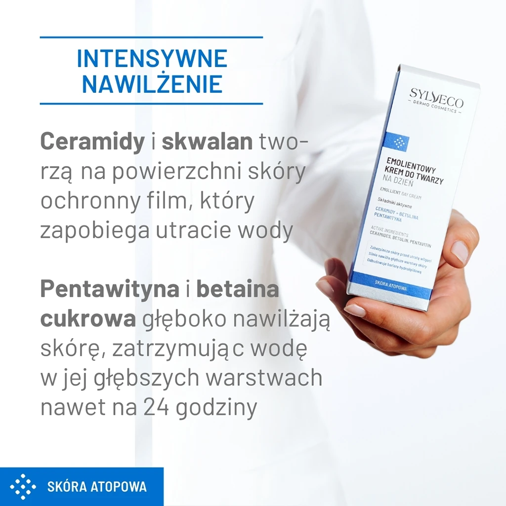 Emolientowy krem do twarzy z linii SYLVECO DERMO to produkt, który świetnie sprawdzi się w porannej pielęgnacji osób z objawami zaburzenia funkcji bariery skórnej, atopii, skóry wrażliwej i delikatnej. Swoje skuteczne działanie ochronne produkt opiera na ceramidach i skwalanie, które tworzą na powierzchni skóry film, zapobiegający utracie wody. Pentawityna i betaina cukrowa głęboko nawilżają skórę, zatrzymując wodę w jej głębszych warstwach nawet na 24 godziny. Oleje roślinne (ze słonecznika, ze słodkich migdałów) oraz betulina wzmacniają barierę ochronną skóry, przywracając jej elastyczność i zdrowy wygląd.