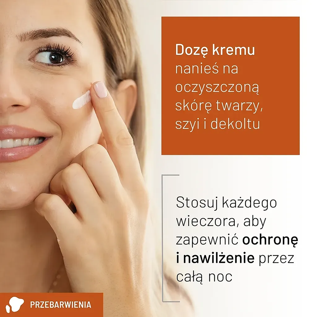 Specjalistyczny krem rozjaśniający na noc przeznaczony dla osób zmagających się z przebarwieniami posłonecznymi, pozapalnymi, potrądzikowymi, zmianami barwnikowymi i nierównym kolorytem skóry. Skuteczna formuła, bazująca na kwasie azelainowym, kwasie kojowym, azeloglicynie i betulinie przywraca skórze jednolity koloryt, rozjaśniając ją. Drogocenna witamina C zapewnia wyrównaną strukturę i koloryt, działa silnie antyoksydacyjnie i stymuluje do odnowy.