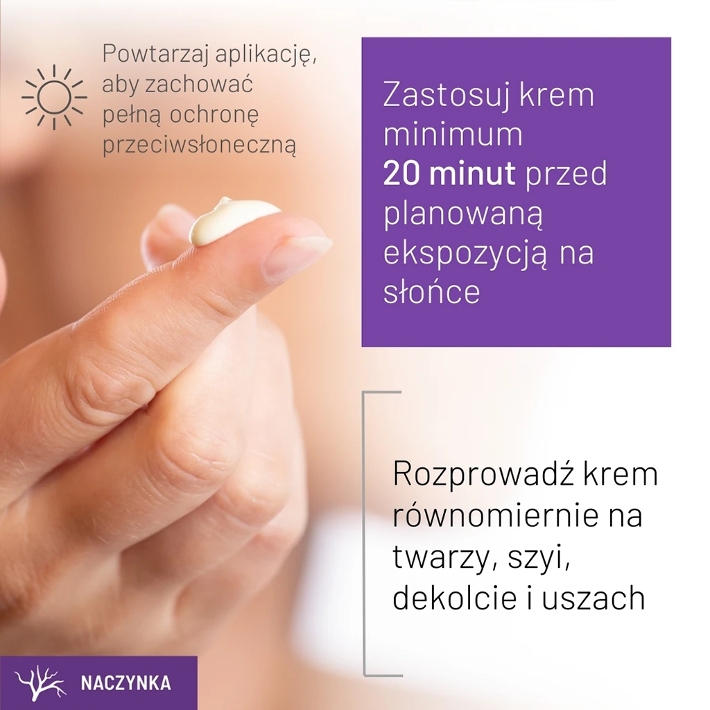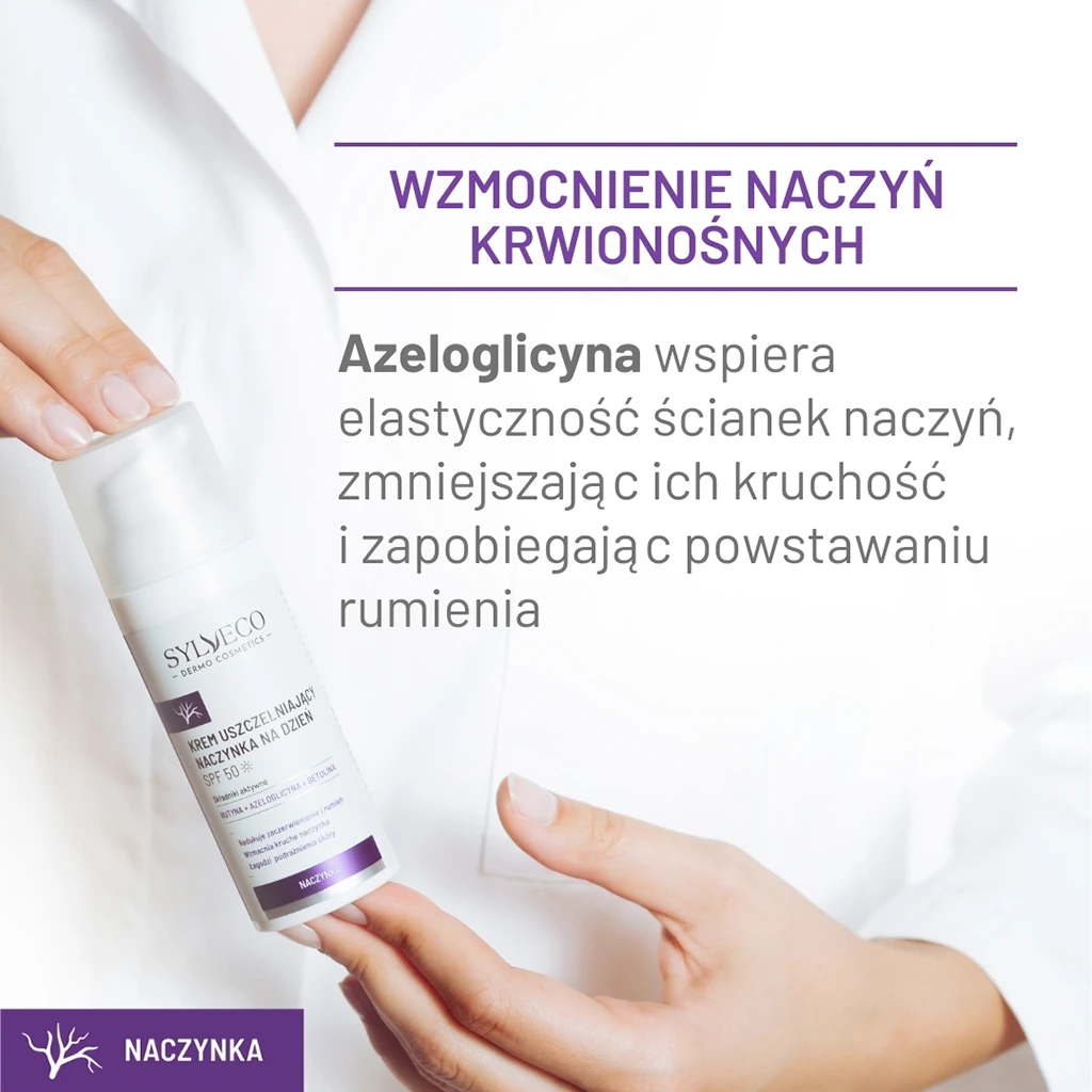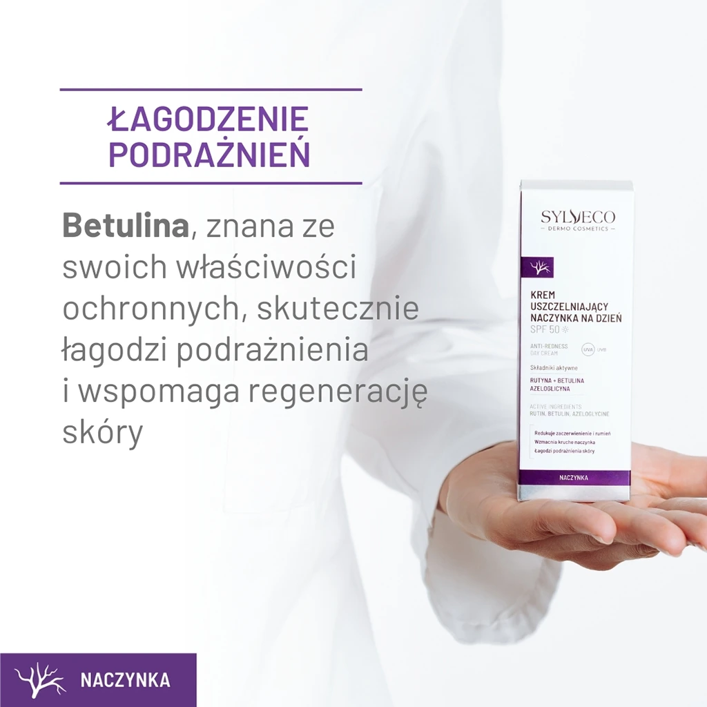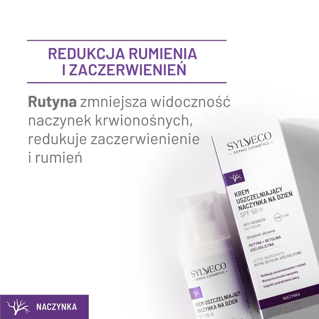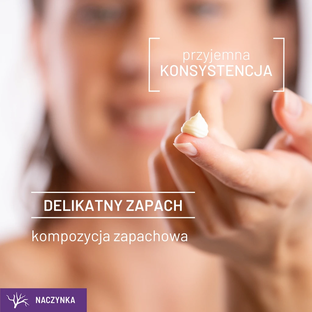 Krem sprawdzi się w codziennej pielęgnacji osób walczących z niechcianym zaczerwienieniem, rumieniem, poszerzonymi naczynkami lub trądzikiem różowatym. Zawarta w nim rutyna zmniejsza widoczność naczynek krwionośnych, redukuje zaczerwienienie i rumień. Azeloglicyna wspiera elastyczność ścianek naczyń, zmniejszając ich kruchość i zapobiegając powstawaniu rumienia. Znana ze swoich właściwości ochronnych betulina skutecznie łagodzi podrażnienia i wspomaga regenerację skóry.