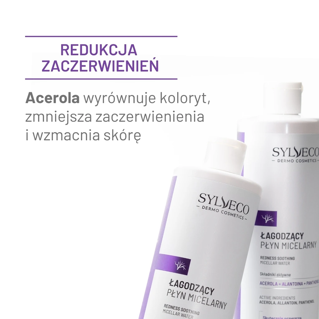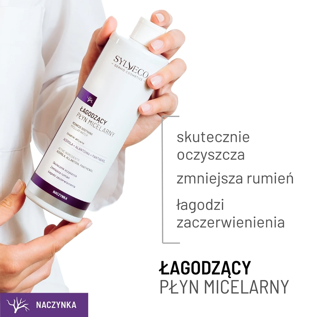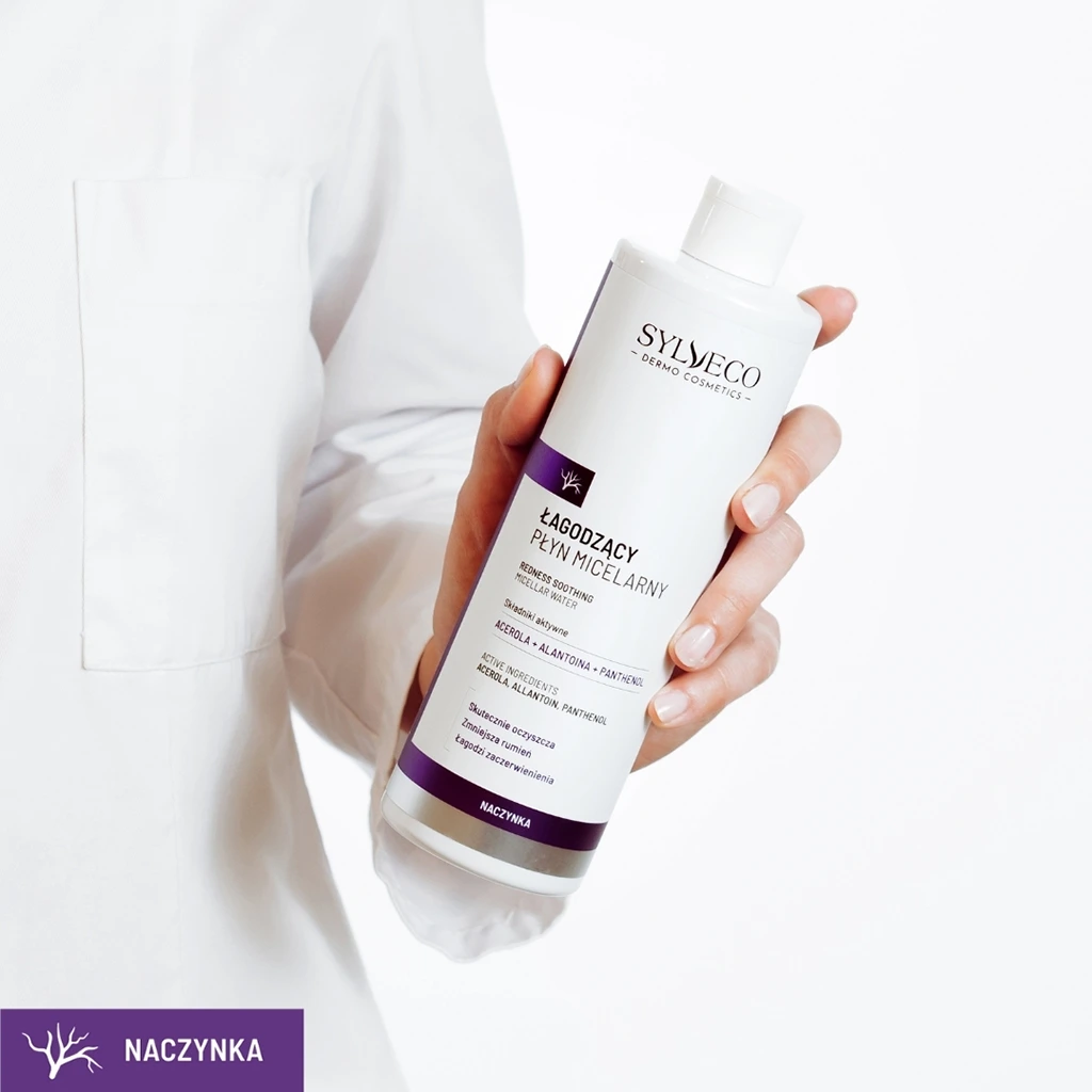 Łagodzący płyn micelarny z linii SYLVECO DERMO sprawdzi się u osób walczących z niechcianym zaczerwienieniem, rumieniem, poszerzonymi naczynkami lub trądzikiem różowatym. Jego łagodna formuła skutecznie, ale jednocześnie bez ryzyka podrażnień usuwa makijaż oczu, twarzy i ust. Odpowiednie nawilżenie zapewnia zawarta w producie gliceryna, która zapobiega uczuciu ściągnięcia i suchości skóry.