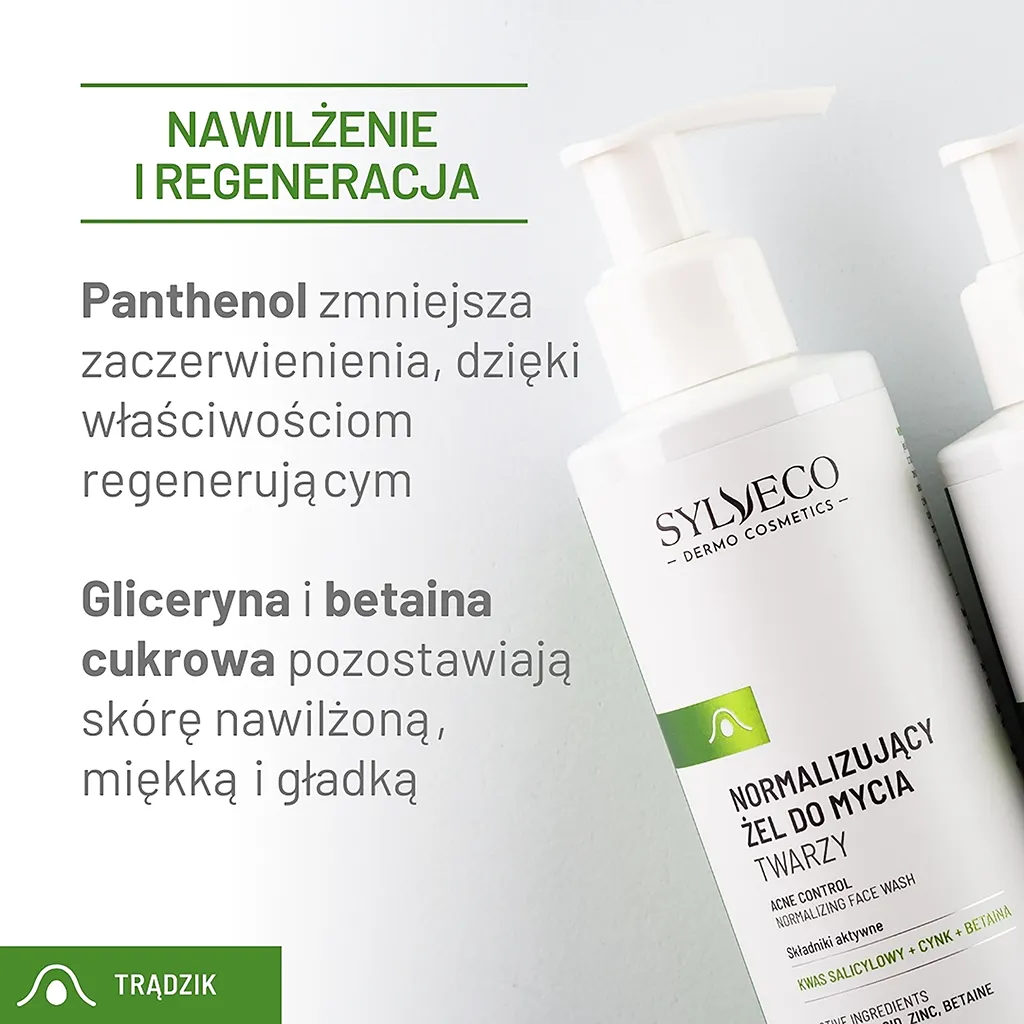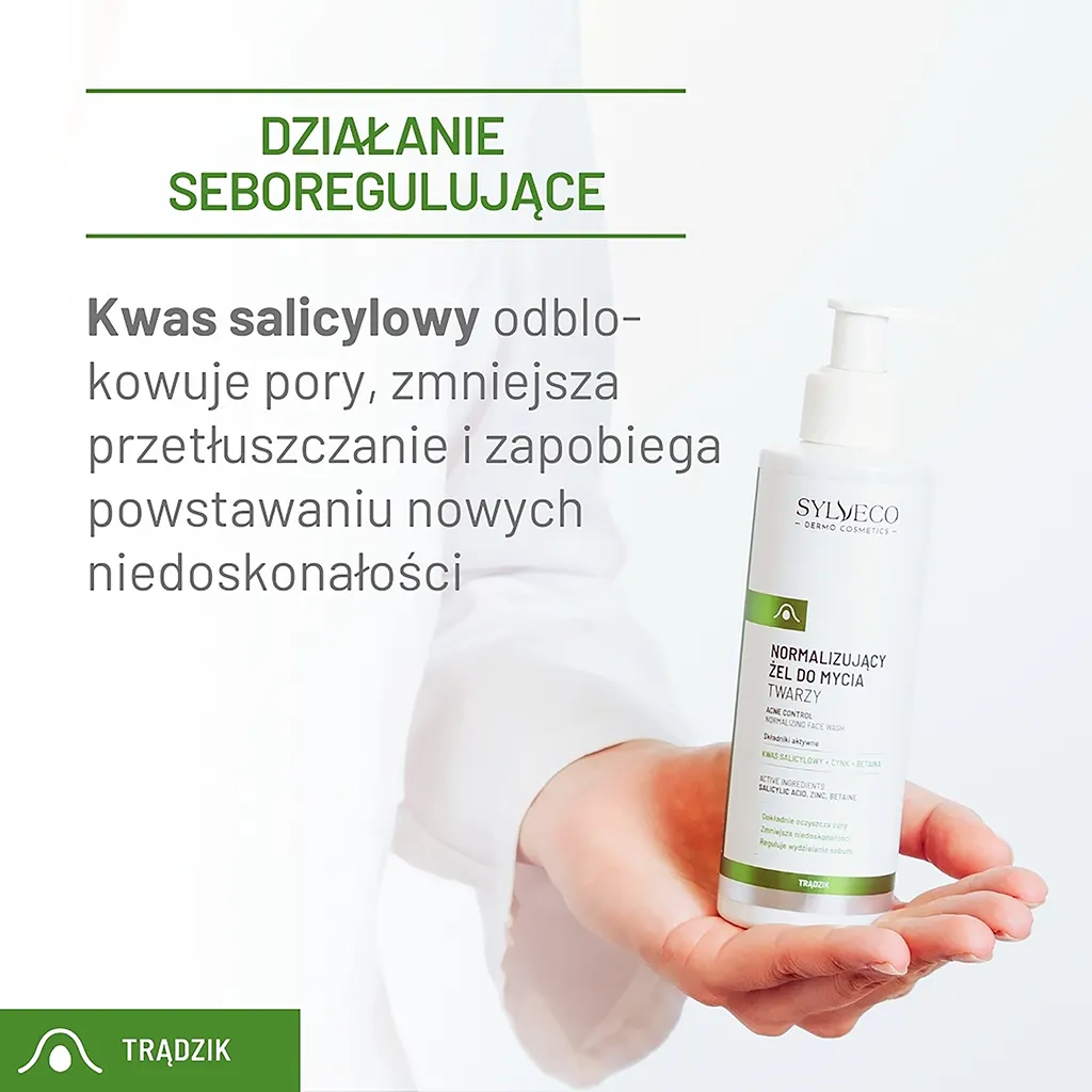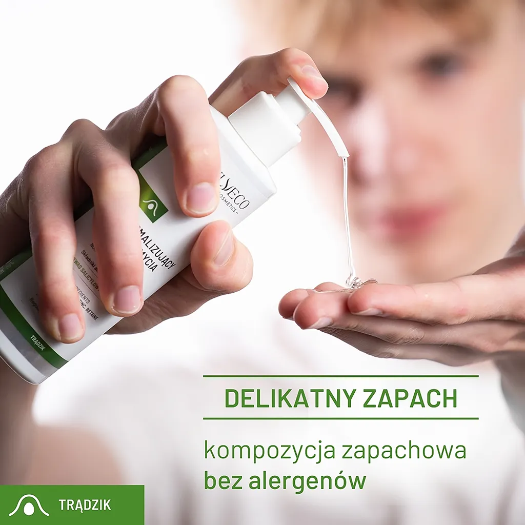 Normalizujący żel do mycia twarzy dla osób mających wzmożony łojotok, trądzik młodzieńczy, trądzik hormonalny, wągry, zaskórniki i inne niedoskonałości. Łagodne, ale skuteczne środki myjące usuwają zanieczyszczenia i nadmiar sebum. Piroglutaminian cynku wspomaga oczyszczanie i redukcję zmian skórnych, takich jak zaskórniki i wypryski.