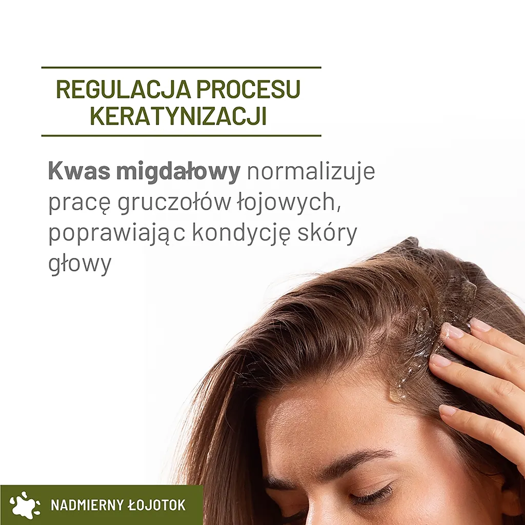 Oczyszcza skórę głowy, Reguluje proces keratynizacji, Zmniejsza łojotok