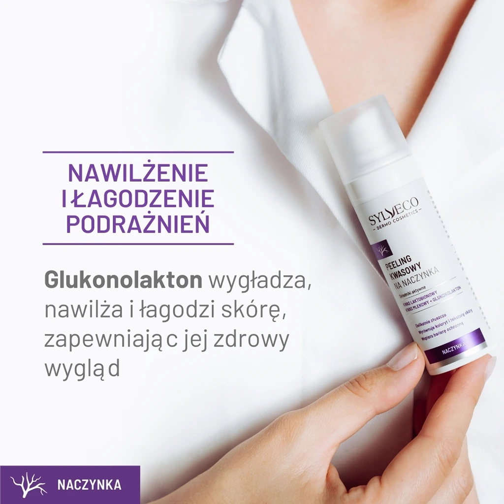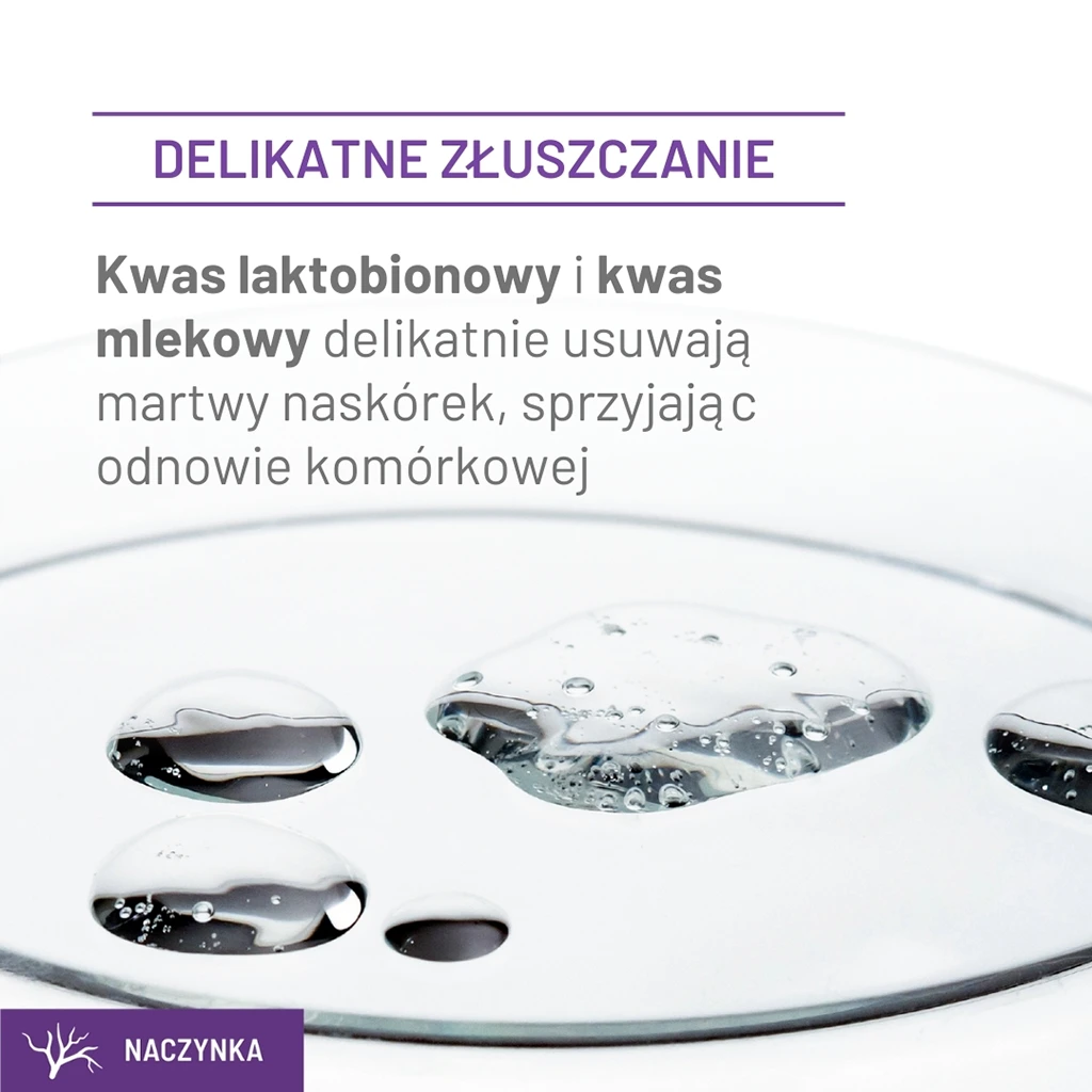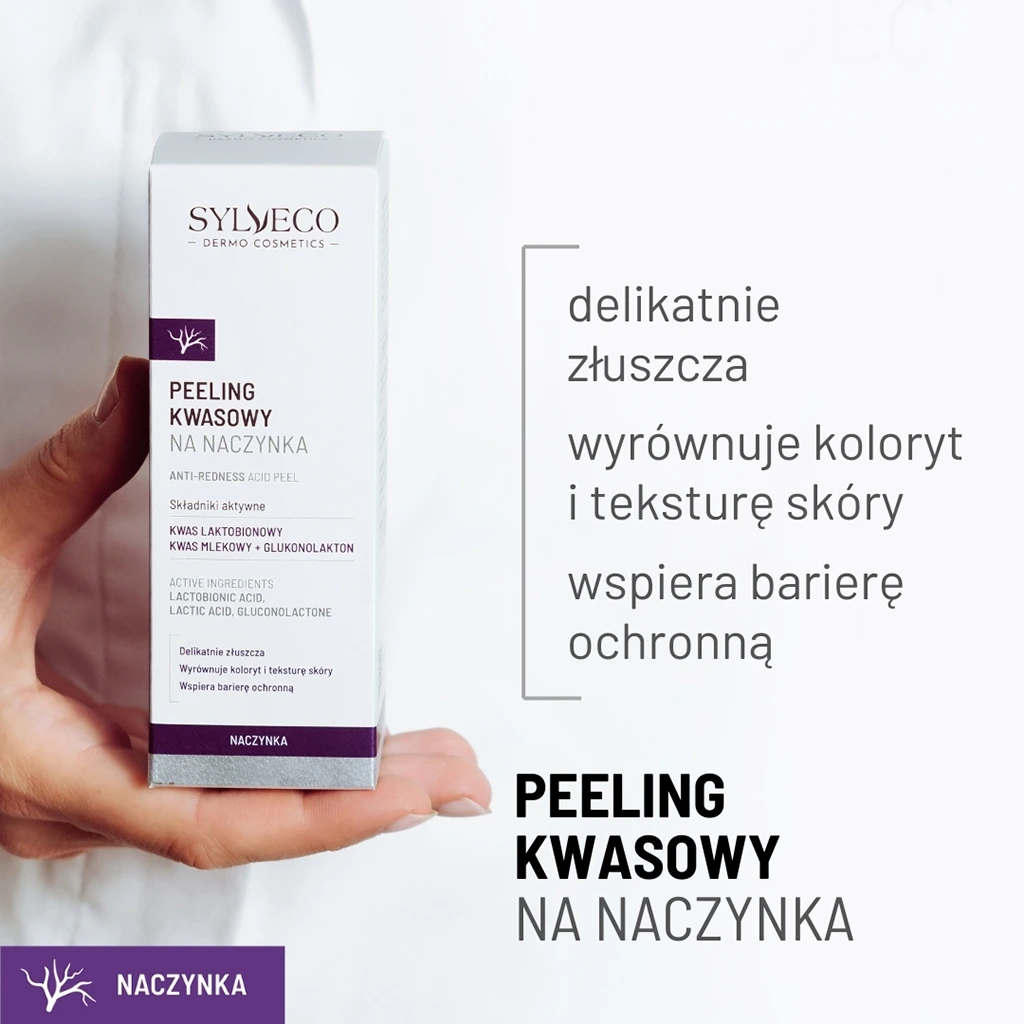 Peeling kwasowy na naczynka powstał dla osób walczących z niechcianym zaczerwienieniem, rumieniem, poszerzonymi naczynkami lub trądzikiem różowatym. Jego skuteczność bazuje na kwasie laktobionowym i kwasie mlekowym, które delikatnie usuwają martwy naskórek, sprzyjając odnowie komórkowej. Zawarty w peelingu glukonolakton wygładza, nawilża i łagodzi skórę, zapewniając jej zdrowy wygląd.