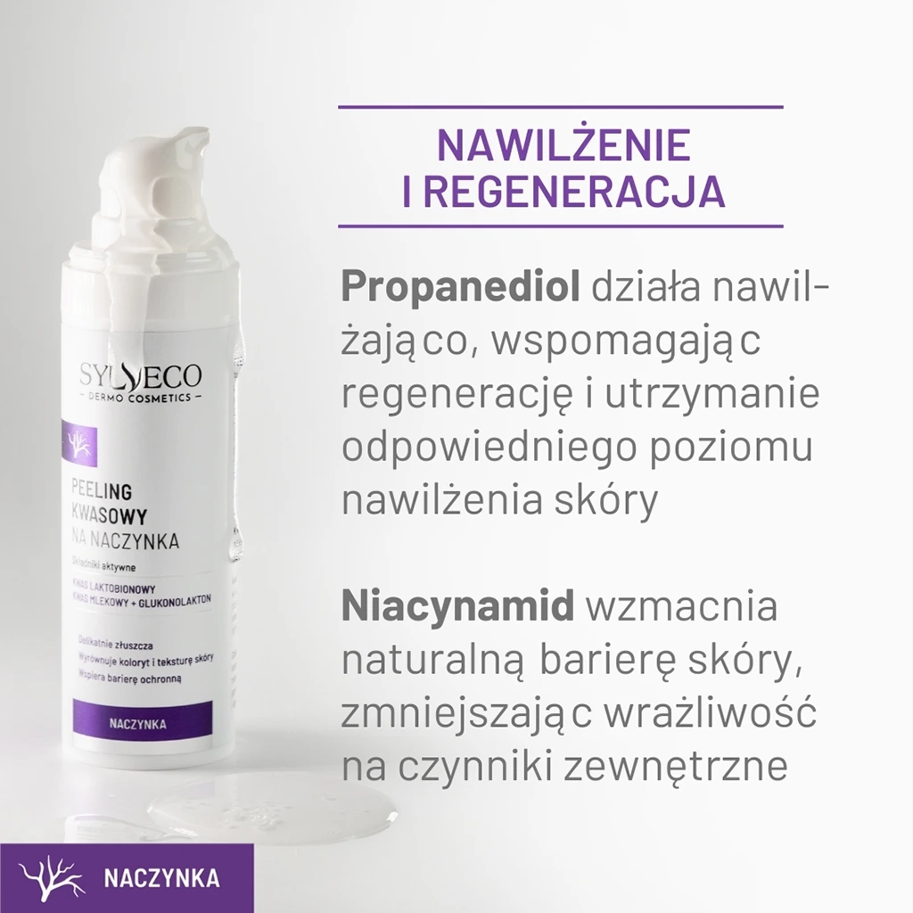 Propanediol działa nawilżająco, wspomagając regenerację i utrzymanie odpowiedniego poziomu nawilżenia skóry. Niacynamid wzmacnia naturalną barierę skóry, zmniejszając wrażliwość na czynniki zewnętrzne. Produkt posiada delikatny zapach (kompozycja zapachowa bez alergenów).
