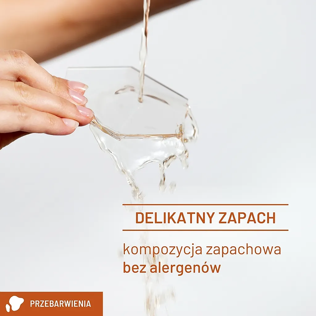 Nanieś płyn na płatek kosmetyczny i delikatnie przetrzyj skórę twarzy, szyi i dekoltu.