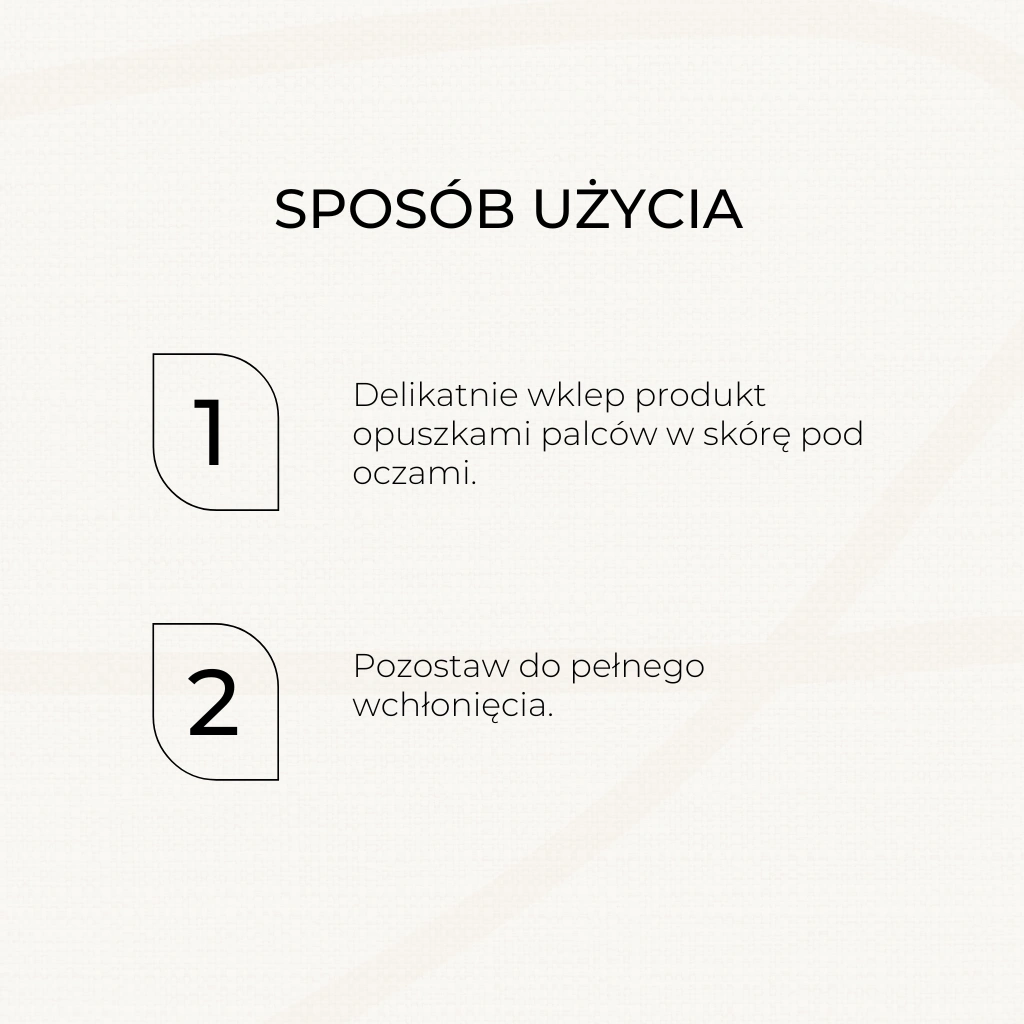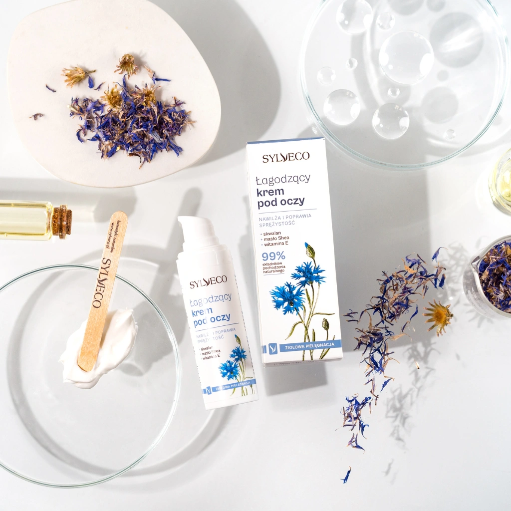 Chaber bławatek i świetlik łąkowy to znane w medycynie ludowej rośliny o dobroczynnym działaniu na oczy. Zawarte w naszym kremie zapewniają najdelikatniejszej i najcieńszej skórze wokół oczu długotrwałą ochronę i ukojenie. Starannie dobrane składniki aktywne kremu pozwolą zmniejszyć cienie i obrzęki, usunąć objawy zmęczenia, poprawiając jednocześnie sprężystość skóry.