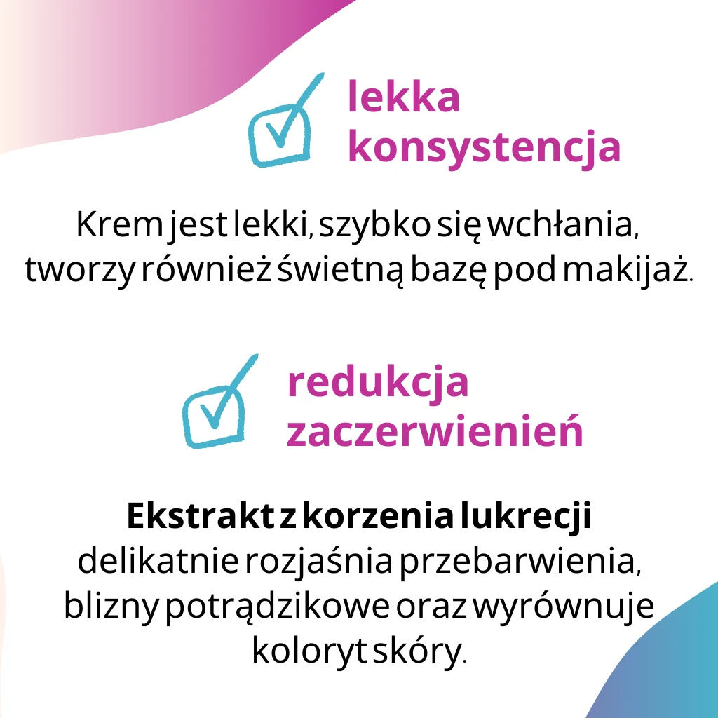 Lekki krem przeznaczony do codziennej pielęgnacji rano i wieczorem dla młodej cery. Utrzymuje odpowiedni stopień nawilżenia, reguluje i chroni przed podrażnieniami. Łagodzi i przyspiesza regenerację w przypadku zmian skórnych.