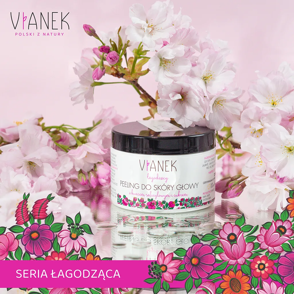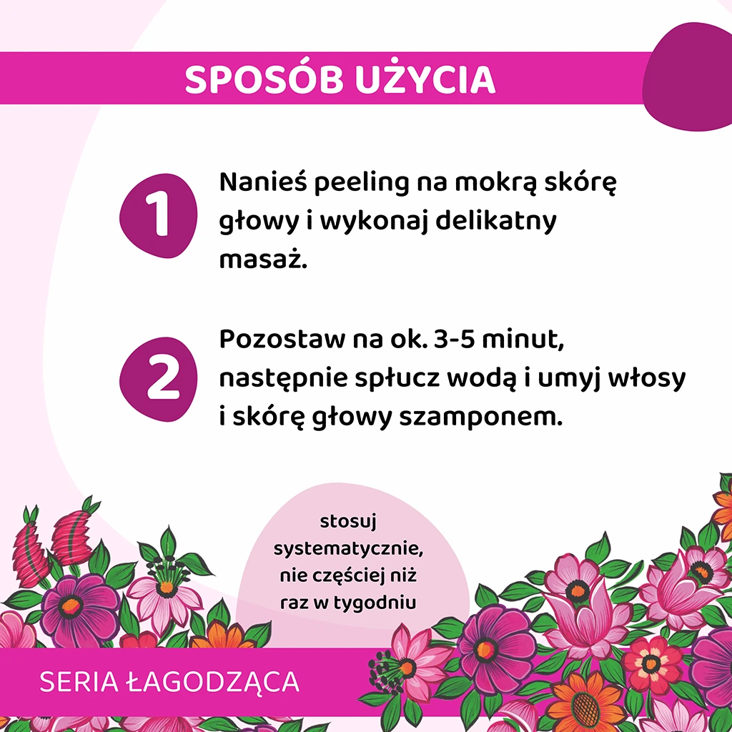 Łagodzący peeling na bazie kryształków cukru, pozwala dokładnie oczyścić skórę głowy i zredukować łupież. Poprzez aktywny masaż, stymuluje cebulki i przyspiesza wzrost włosów. Dzięki zawartości cennych olejów (m.in. kokosowy, słonecznikowy) i masła shea, peeling pozostawiony przez kilka dodatkowych minut na włosach, zapewnia im dodatkowe nawilżenie i odżywienie. Kwas salicylowy delikatnie złuszcza oraz redukuje nadmiar sebum. Systematyczne stosowanie poprawia kondycję skóry głowy, zmniejsza objawy łupieżu, sprawiając, że włosy rosną zdrowsze, gładsze i mocniejsze.