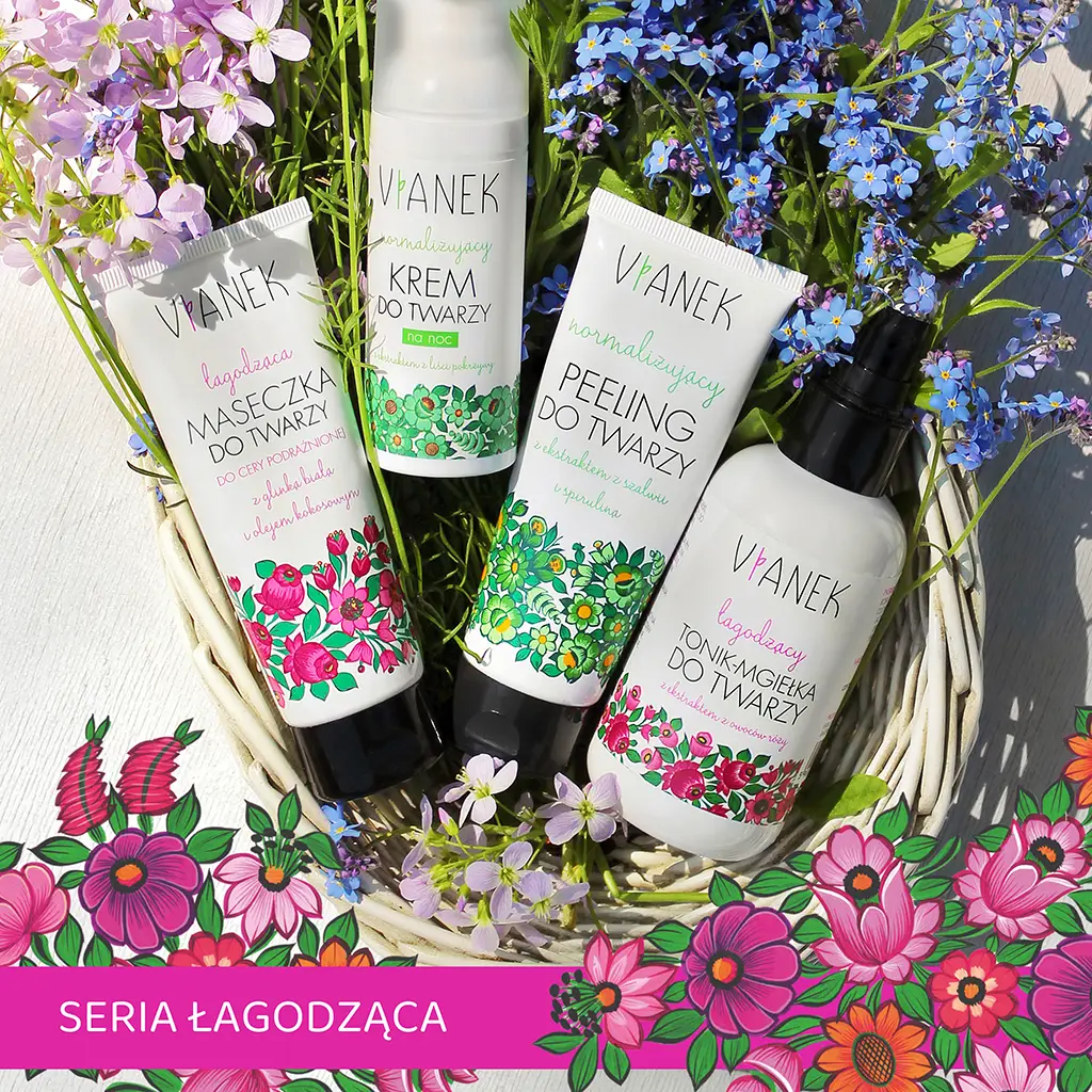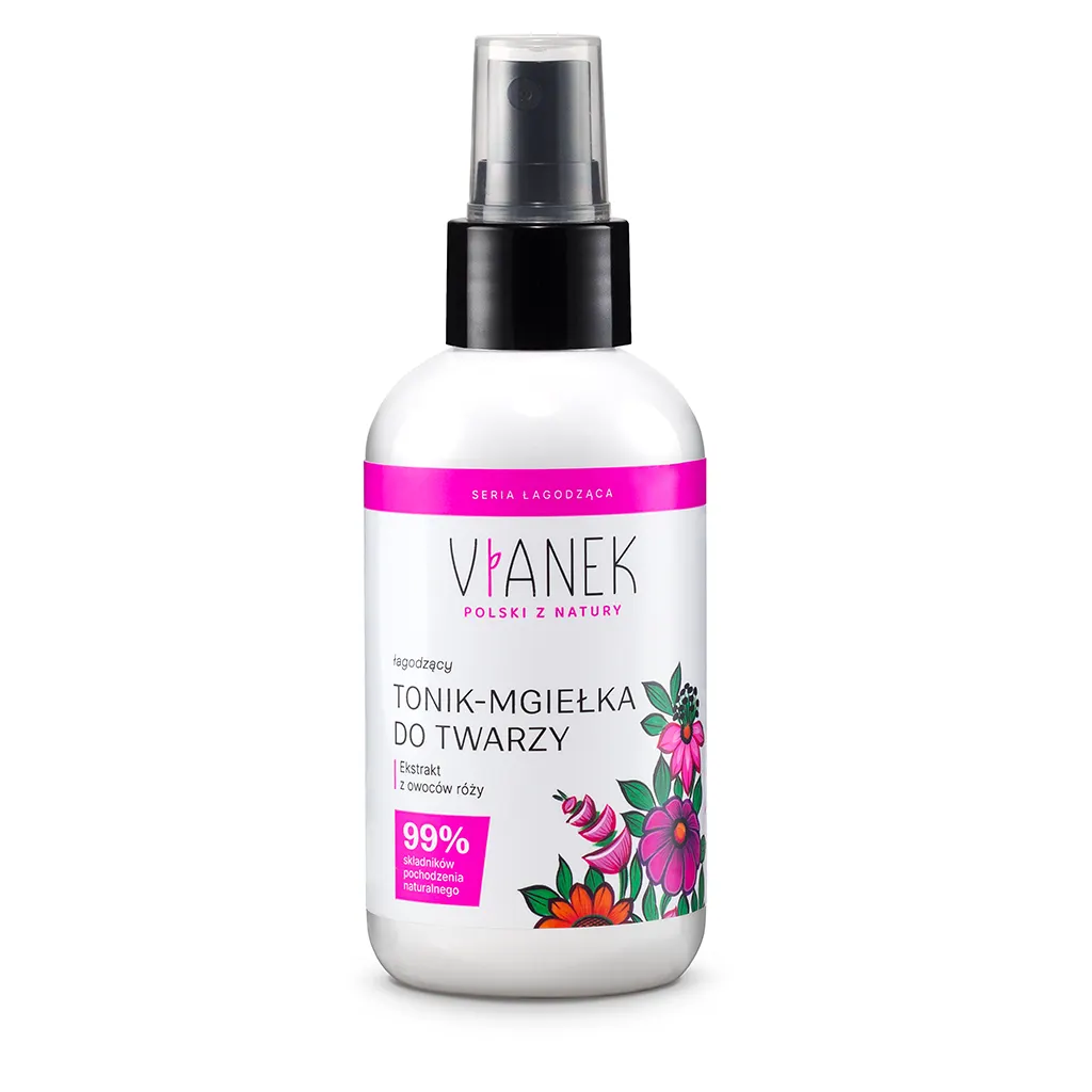 Delikatny tonik nawilżający w formie mgiełki, na bazie ekstraktu z owoców dzikiej róży, do pielęgnacji cery wyjątkowo wrażliwej, podrażnionej. Uzupełnia demakijaż, przywracając skórze odpowiedni poziom pH. Zawiera składniki o działaniu łagodzącym (alantoina), ochronnym (alginian sodu), antyoksydacyjnym i wspomagającym mechanizmy naprawcze, (kwas laktobionowy). Olejek geraniowy poprawia elastyczność i uspokaja skórę.