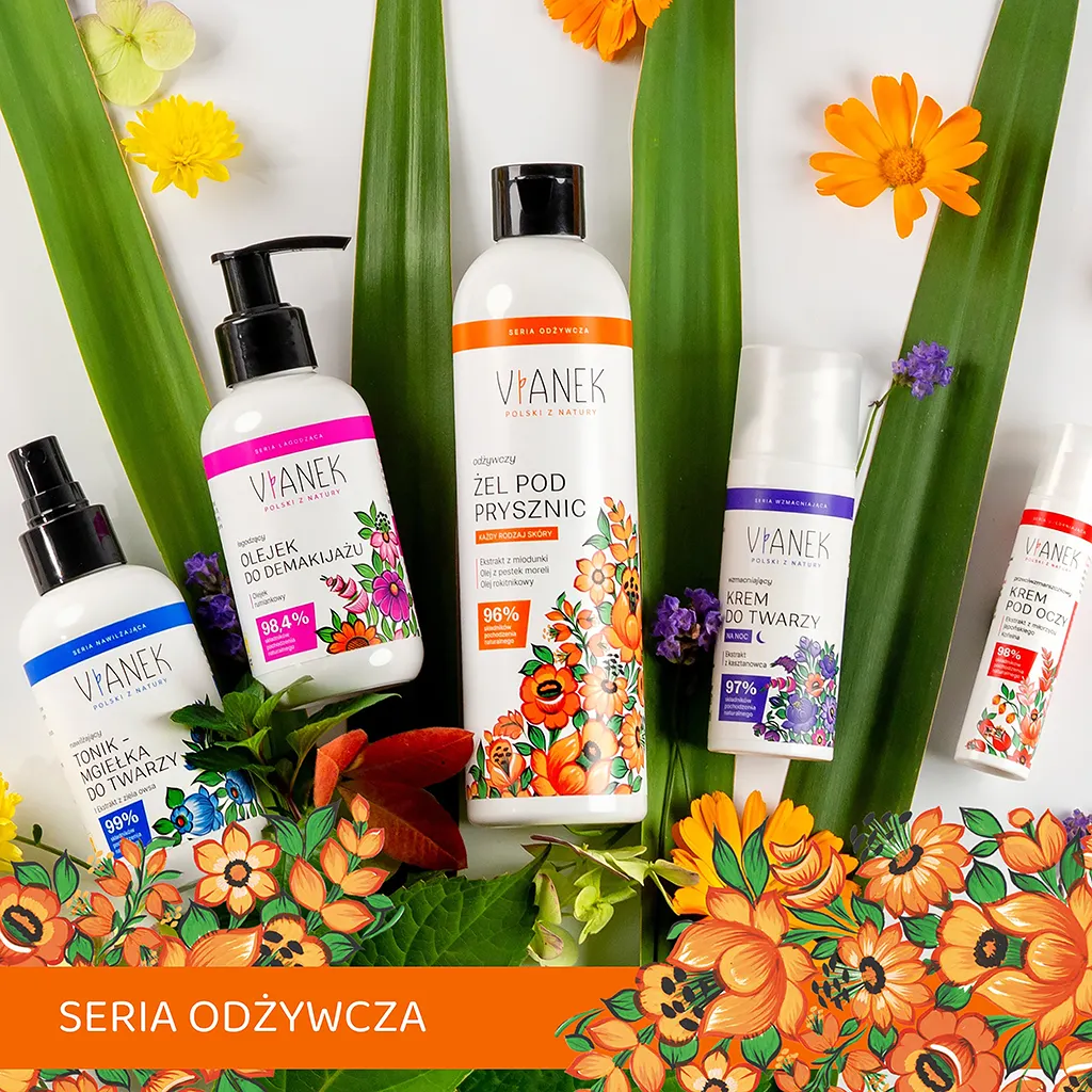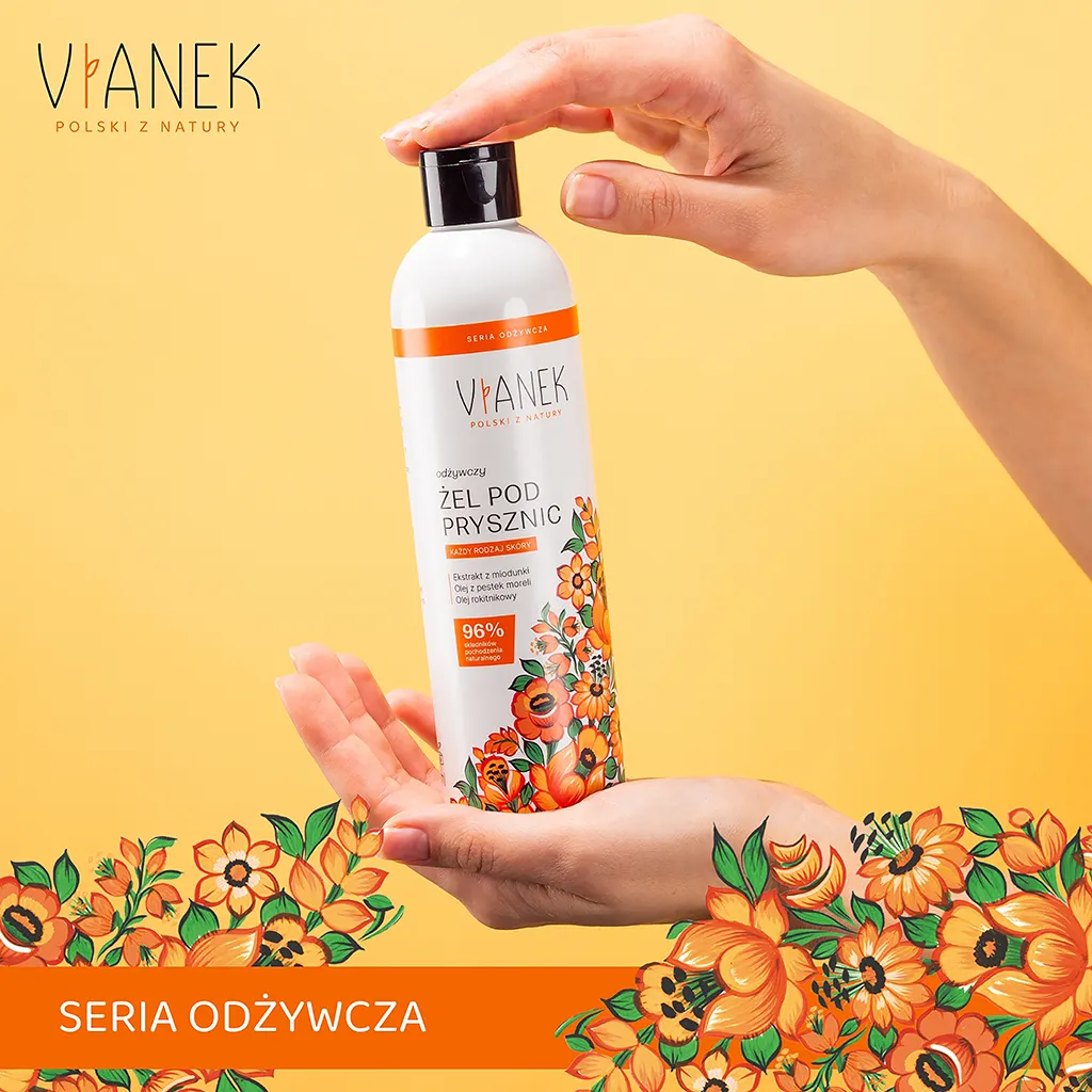 Żel pod prysznic z ekstraktem z miodunki oraz olejem z pestek moreli i rokitnikowym o działaniu odżywczym i nawilżającym. Myje łagodnie i skutecznie, otulając aromatycznym zapachem. Pozostawia po kąpieli uczucie przyjemnej czystości i świeżości. Przy systematycznym stosowaniu skóra zyskuje miękkość i gładkość, poprawia się jej koloryt i sprężystość.