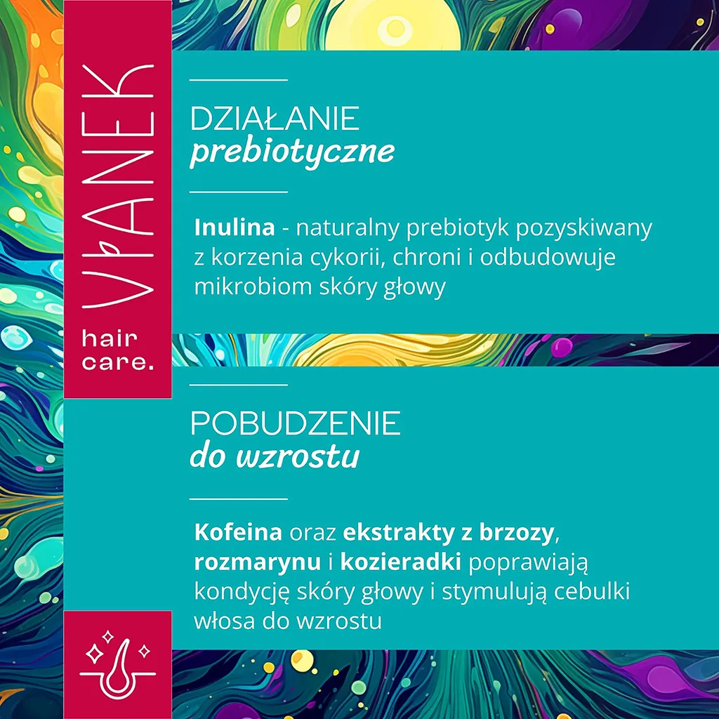 - Kluczowym składnikiem naszej wcierki jest inulina – naturalny prebiotyk pozyskiwany z korzenia cykorii. Inulina chroni i odbudowuje naturalny mikrobiom skóry głowy, co jest niezbędne do zachowania jej prawidłowych funkcji i stworzenia idealnego środowiska do wzrostu włosów.