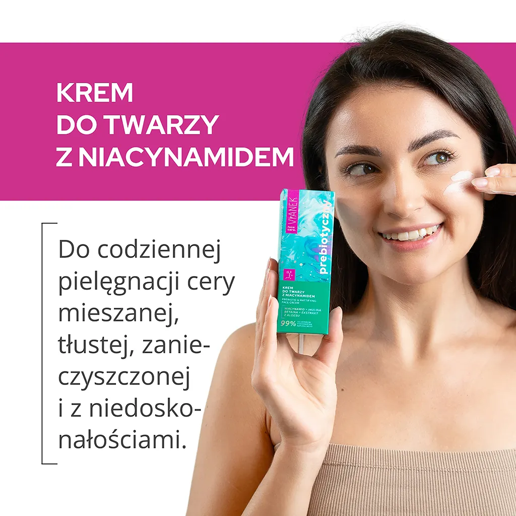 Niacynamid wyrównuje koloryt cery i zmniejsza widoczność przebarwień. Połączenie betainy oraz ekstraktu z aloesu zapewnia nawilżenie, jednocześnie łagodząc podrażnienia. Inulina pełni rolę prebiotyku i wspiera zdrową mikroflorę skóry wzmacniając jej barierę ochronną.