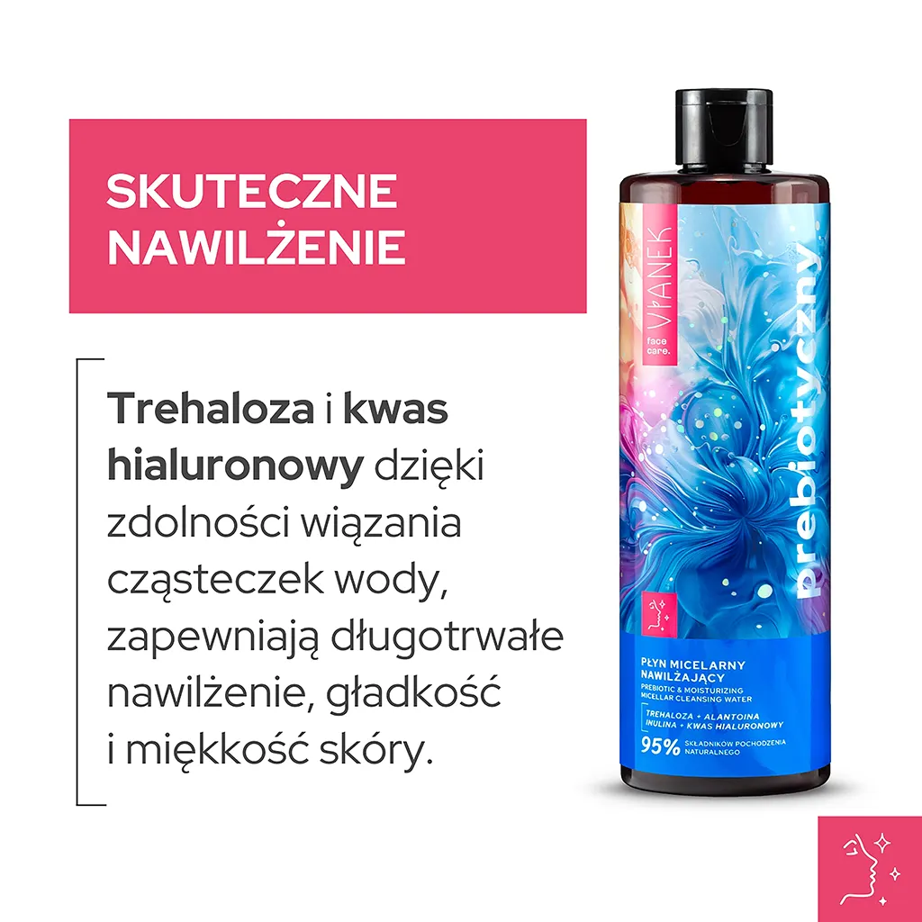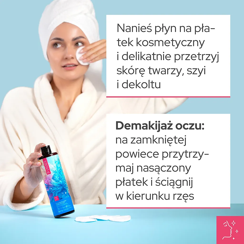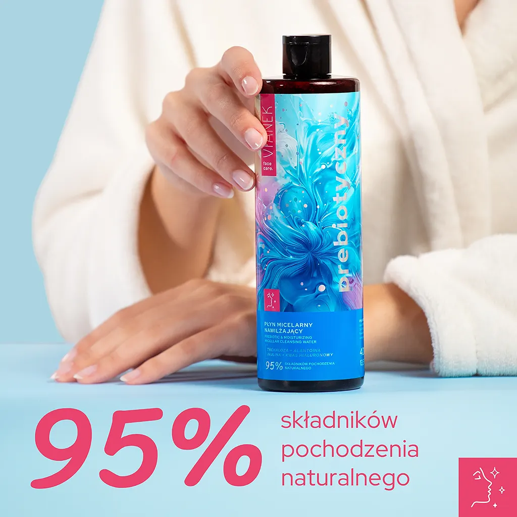Łagodny płyn micelarny do twarzy prebiotyczny to delikatny produkt, który skutecznie usuwa makijaż twarzy, oczu i ust.
