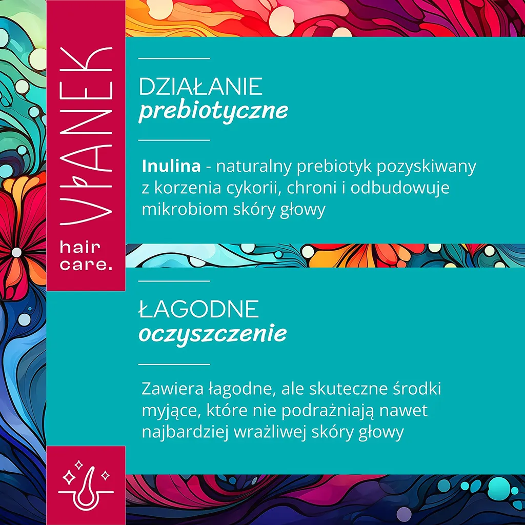 - Szampon zawiera łagodne, ale skuteczne środki myjące, które nie powodują podrażnień nawet najbardziej wrażliwej skóry głowy. Zawarta w nim inulina, naturalny prebiotyk pozyskiwany z korzenia cykorii, jest naszym sekretem do wzmocnienia mikrobiomu skóry głowy. Ten kluczowy składnik pomaga stworzyć idealne środowisko do wzrostu zdrowych, lśniących włosów, zapewniając im siłę i witalność.