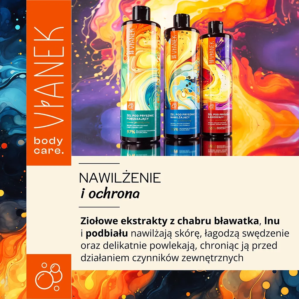 - Wzbogacony ziołowymi ekstraktami z chabru bławatka, lnu i podbiału, żel nie tylko nawilża, ale również łagodzi swędzenie i delikatnie powleka skórę, chroniąc ją przed szkodliwym działaniem czynników zewnętrznych. Ta wyjątkowa kompozycja składników sprawia, że skóra staje się miękka, gładka i nawilżona, a Ty możesz cieszyć się uczuciem komfortu przez cały dzień.