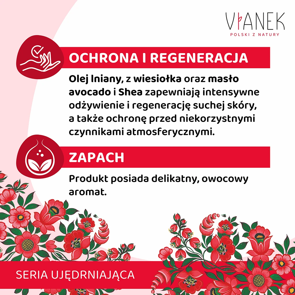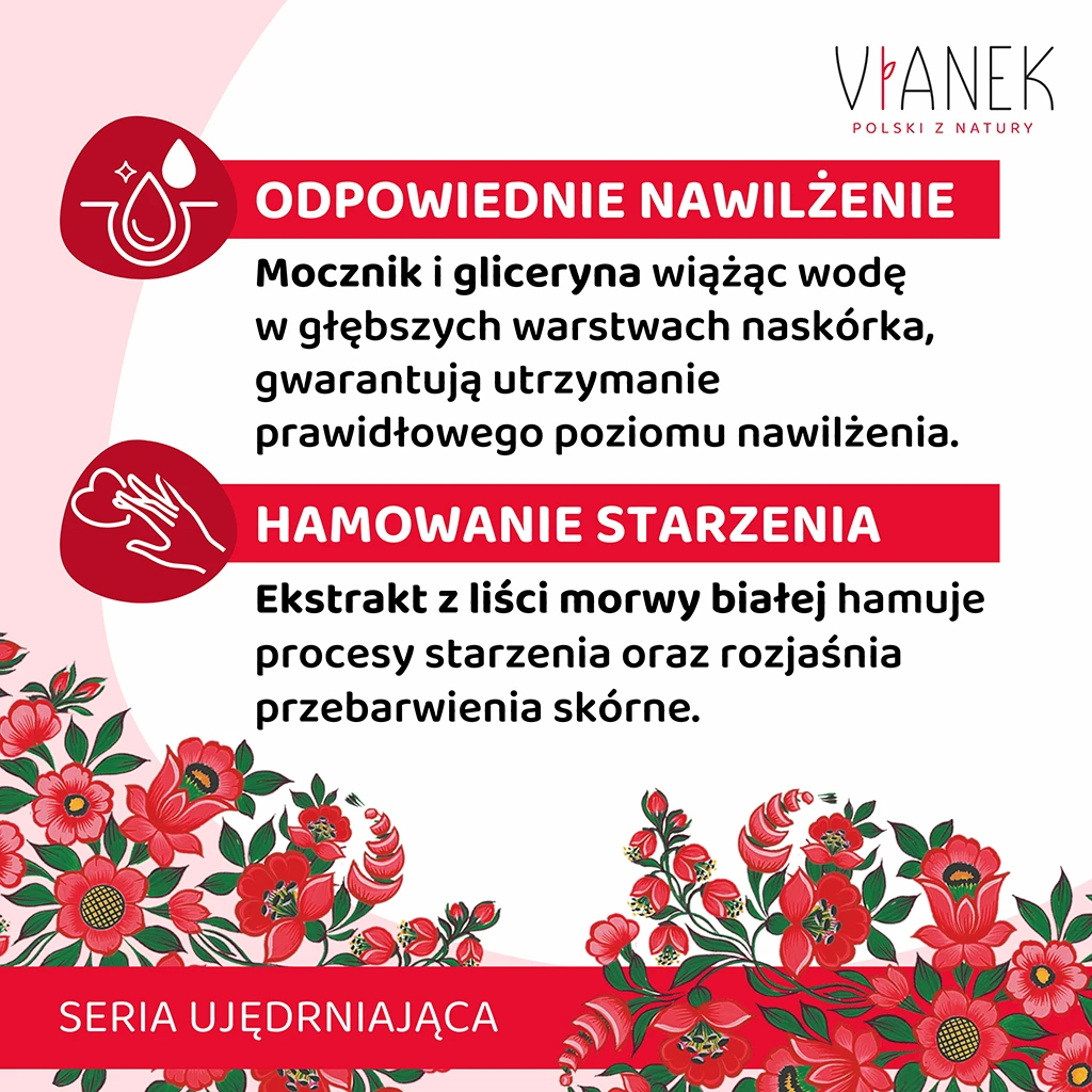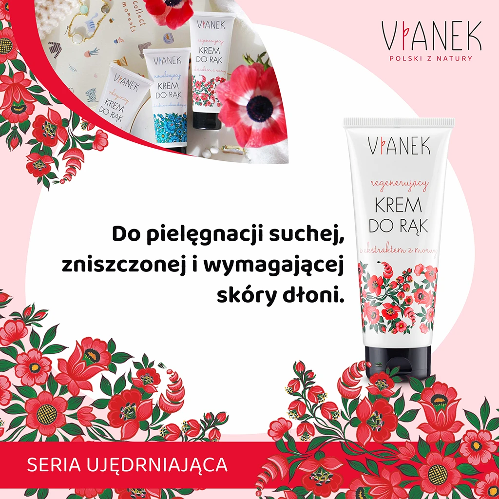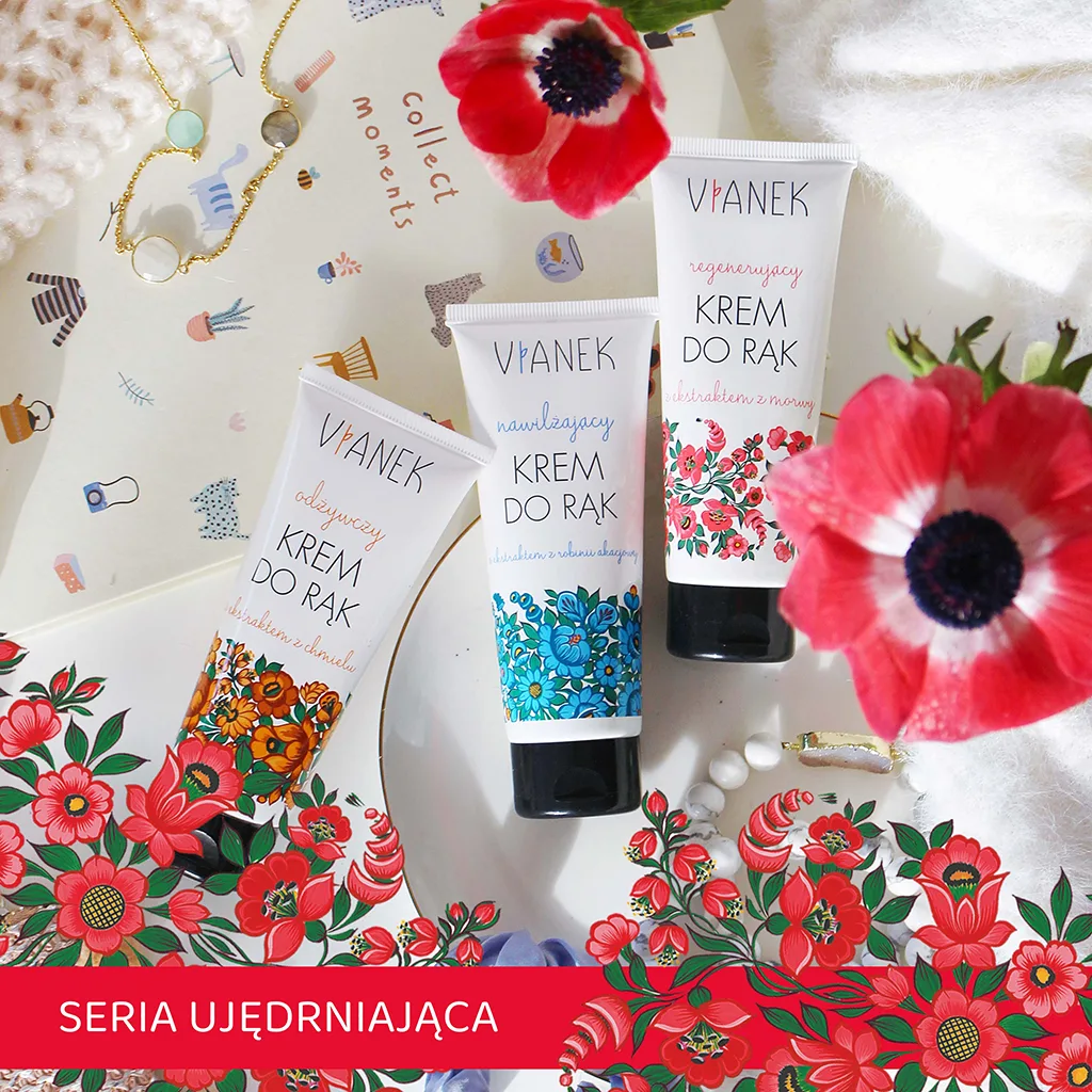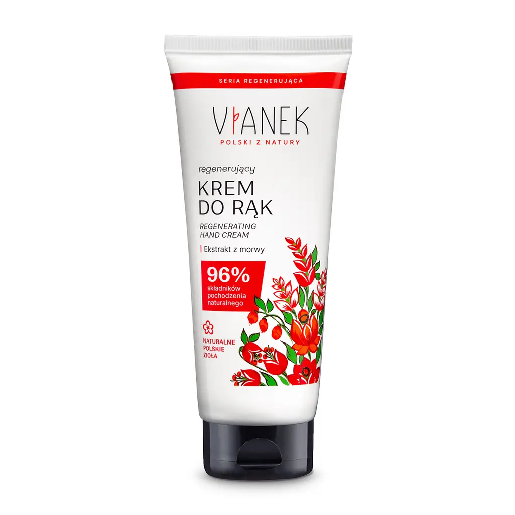 Regenerujący krem do rąk z ekstraktem z liści morwy białej o właściwościach przeciwstarzeniowych i rozjaśniających przebarwienia. Zimnotłoczone oleje (lniany, wiesiołkowy) i masła (shea, avocado) zapewniają wyjątkowe odżywienie skóry i zapewniają jej ochronę przed niekorzystnymi czynnikami. Mocznik i gliceryna, wiążąc wodę w głębszych warstwach naskórka, gwarantują utrzymanie prawidłowego poziomu nawilżenia przez dłuższy czas. Systematyczne stosowanie kremu zapewnia dłoniom miękkość, elastyczność i młody wygląd.