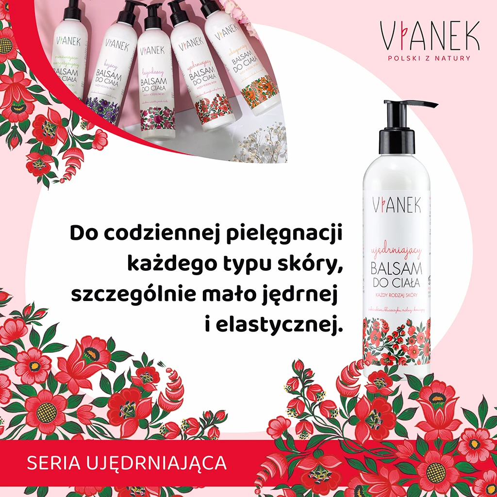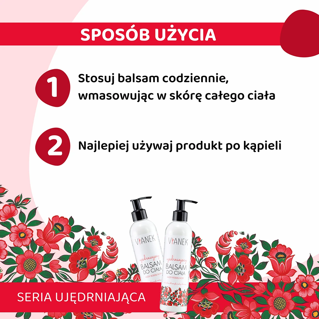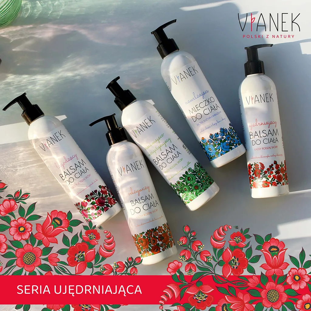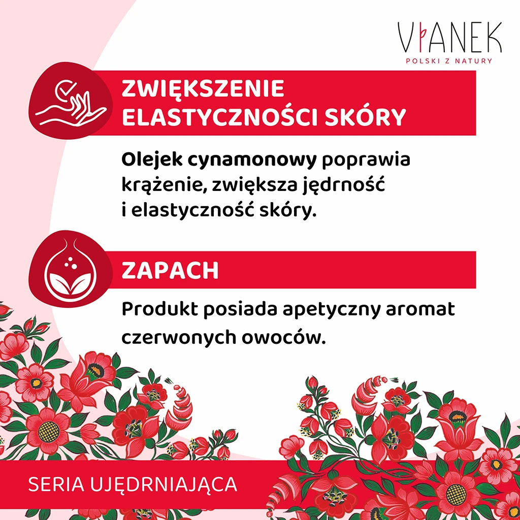 Silnie nawilżający balsam do ciała, przeznaczony do codziennej pielęgnacji i profilaktyki antycellulitowej. Zawiera ekstrakty z bluszczyku, kwiatów malwy i koniczyny, które działają wzmacniająco na skórę i spowalniają procesy jej starzenia. Dzięki wysokiej zawartości humektantów (gliceryna i mocznik), po zastosowaniu odczuwalne jest zmiękczenie, wygładzenie i ujędrnienie skóry. Dodatek olejku eterycznego z kory cynamonu gwarantuje poprawę napięcia i sprężystości skóry. Balsam systematycznie stosowany zmniejsza objawy cellulitu w pierwszym stadium.