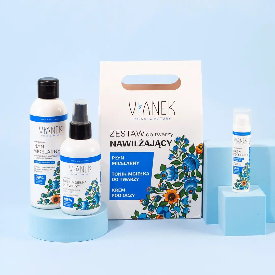 Podaruj swojej skórze odpowiednią dawkę nawilżenia i troski, wybierając nawilżający zestaw VIANEK. To również idealny prezent dla bliskiej osoby.