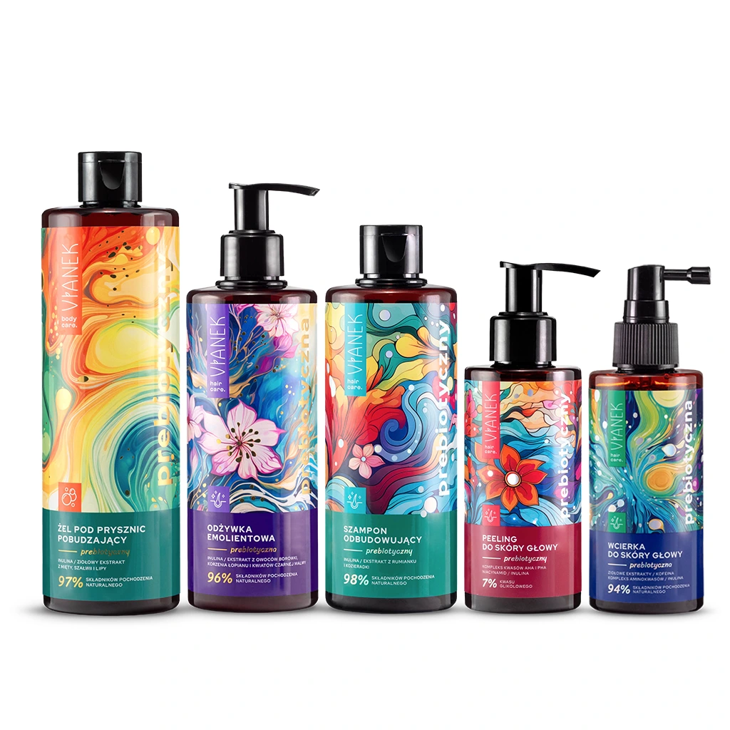 Odkryj sekret zdrowych włosów i promiennej skóry z wyjątkowym zestawem kosmetyków prebiotycznych VIANEK! Nasza starannie opracowana formuła wykorzystuje moc prebiotyków, by odżywić i wzmocnić Twoją skóre głowy, włosów i całego ciała. Kosmetyki wspierają naturalną barierę ochronną i utrzymują idealne pH skóry. Z nową serią VIANEK Prebiotyczny wniesiesz swoją codzienną pielęgnację w nowy wymiar nawilżenia i regeneracji, łagodząc podrażnienia i spowalniając procesy starzenia.