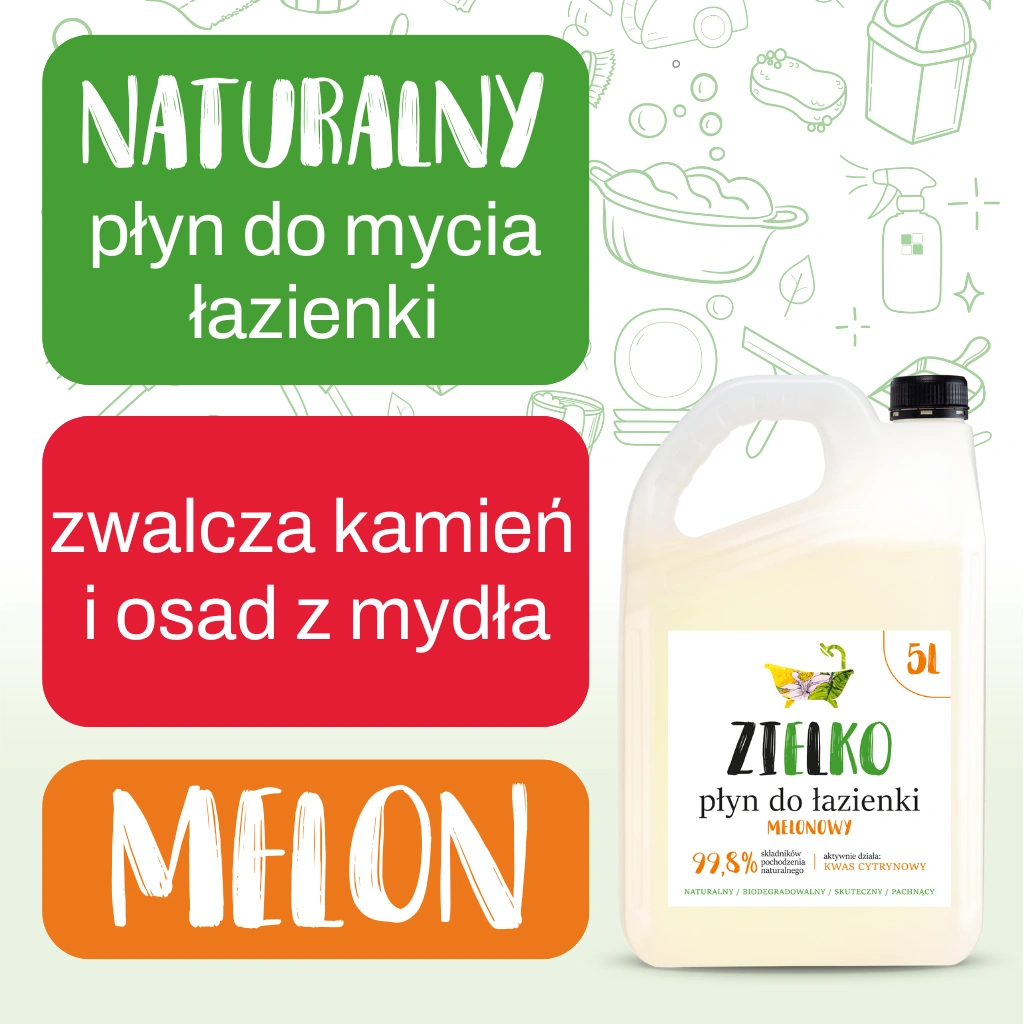 Naturalny płyn skutecznie usuwa łazienkowe zabrudzenia i osady z armatury, kabin prysznicowych, płytek oraz innych powierzchni. Szybko, bez smug i zacieków. Wystarczy spryskać preparatem czyszczoną powierzchnię i po kilku chwilach przetrzeć czystym ręcznikiem.