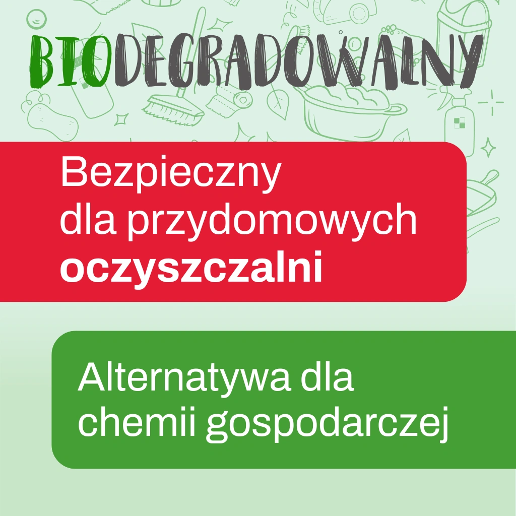 ZIELKO Płyn do łazienki jest w 100% biodegradowalny. Jego skład sprawia, że jest bezpieczny dla flory bakteryjnej, jaka powinna panować w przydomowej oczyszczalni ścieków.