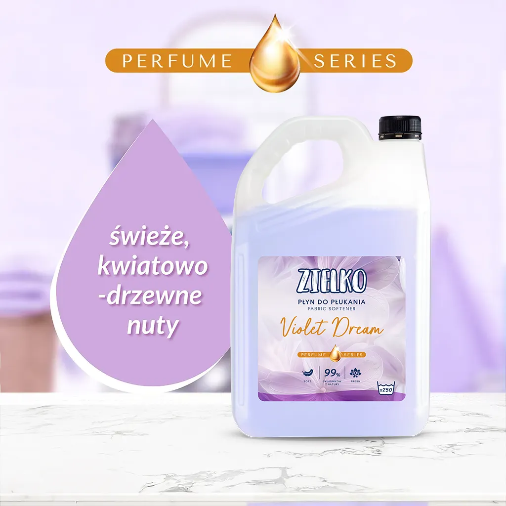Płyn do płukania ZIELKO VIOLET DREAM łączy świeżość kwiatowych nut z ciepłym, drzewnym akcentem, tworząc niezwykle zmysłową i trwałą kompozycję zapachową. Jego nowoczesna formuła sprawia, że ubrania stają się miękkie, lekkie i wyjątkowo przyjemne w dotyku.
