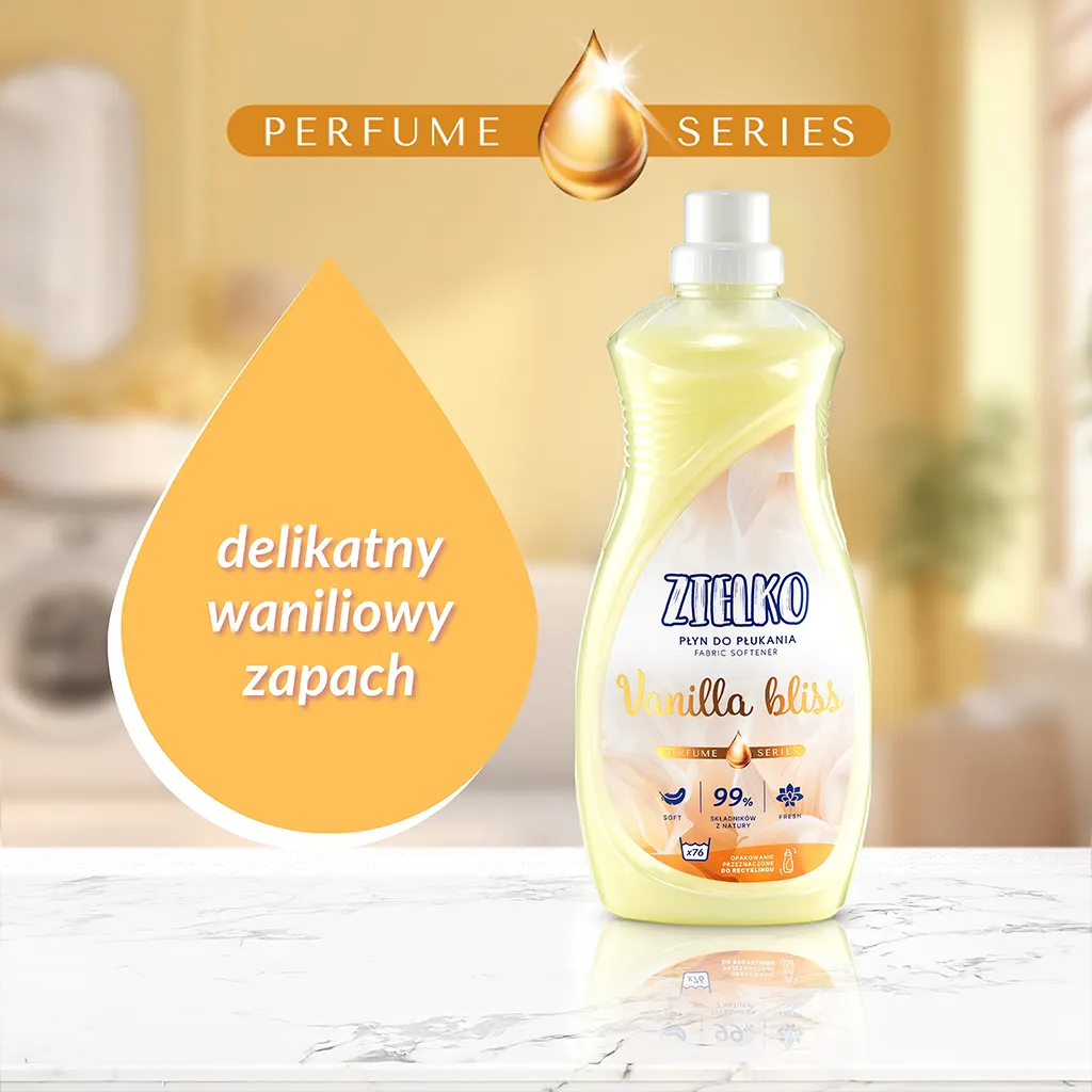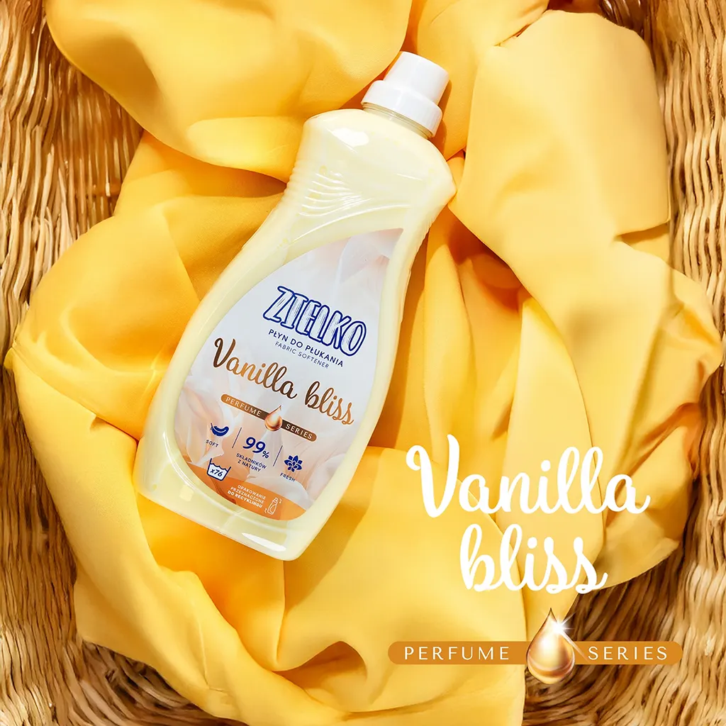 Odkryj wyjątkową miękkość i otulające ciepło waniliowego aromatu! Płyn do płukania ZIELKO VANILLA BLISS nada Twoim tkaninom jedwabistą delikatność, dbając jednocześnie o ich strukturę. Subtelna, słodka kompozycja zapachowa sprawia, że pranie pachnie świeżo i przyjemnie przez długi czas.