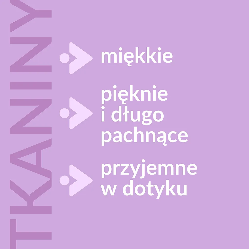 Sposób użycia: Dodaj 40 ml płynu (jedna nakrętka) do przegródki na płyn do płukania w pralce. Używaj w ostatnim cyklu prania, aby tkaniny były miękkie i pachnące.