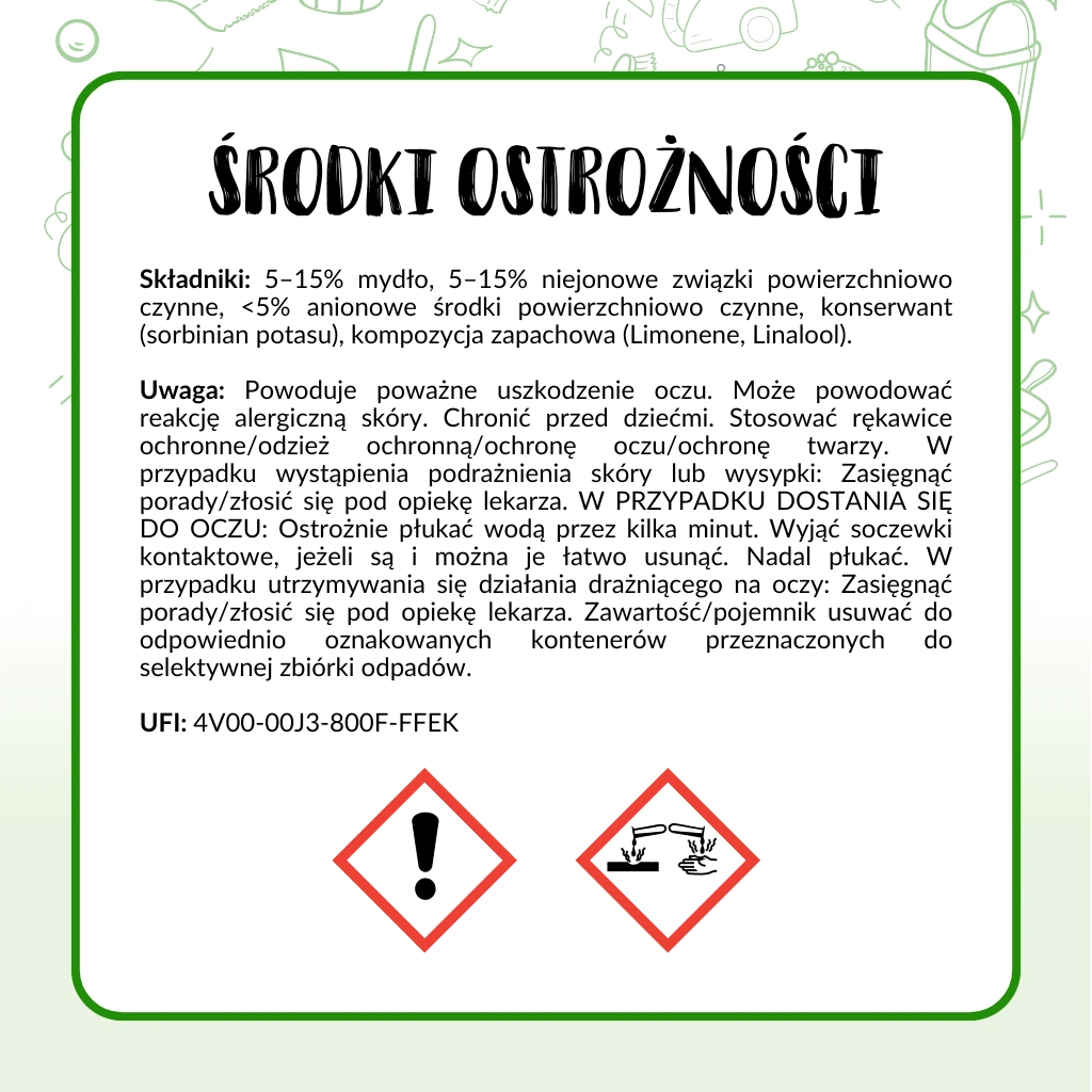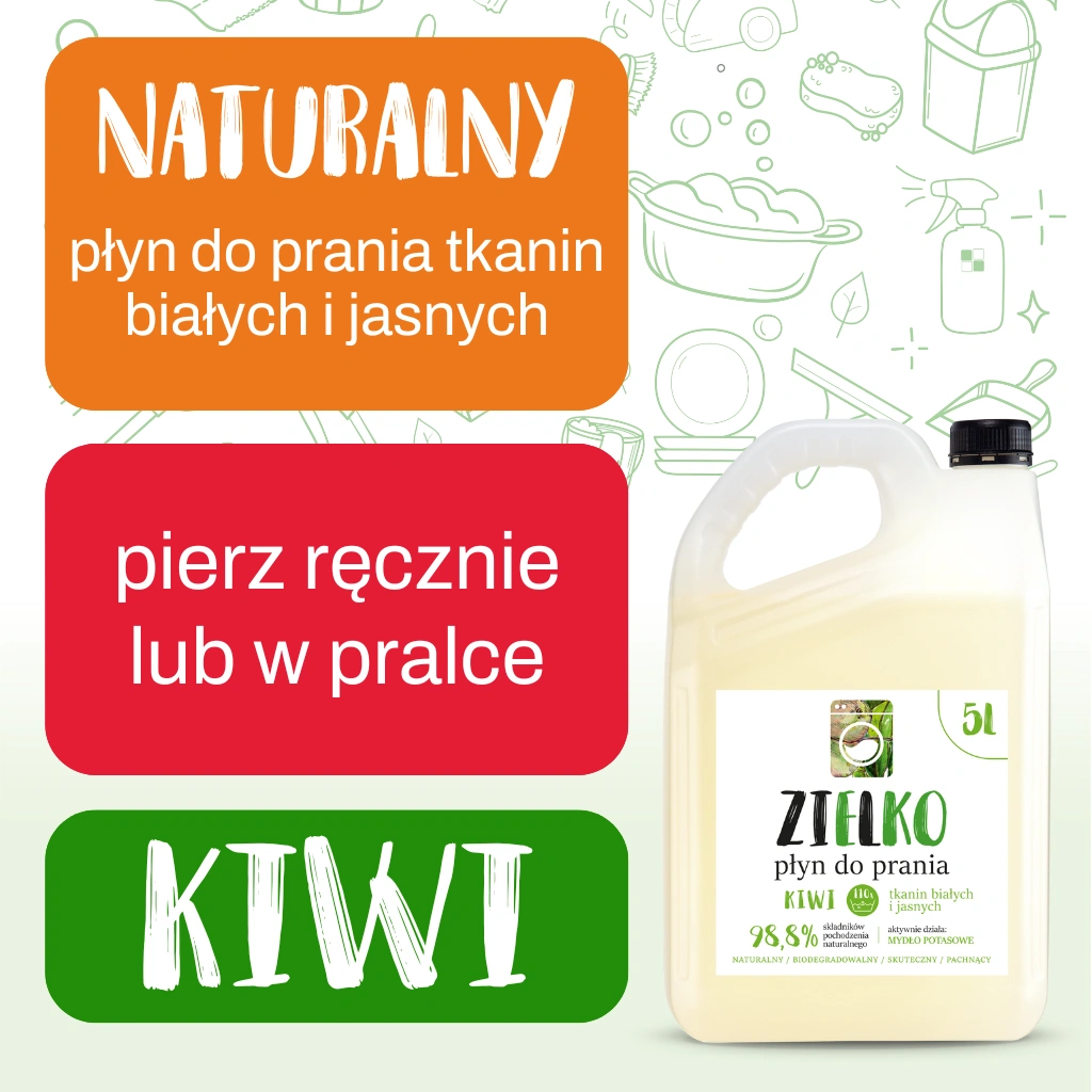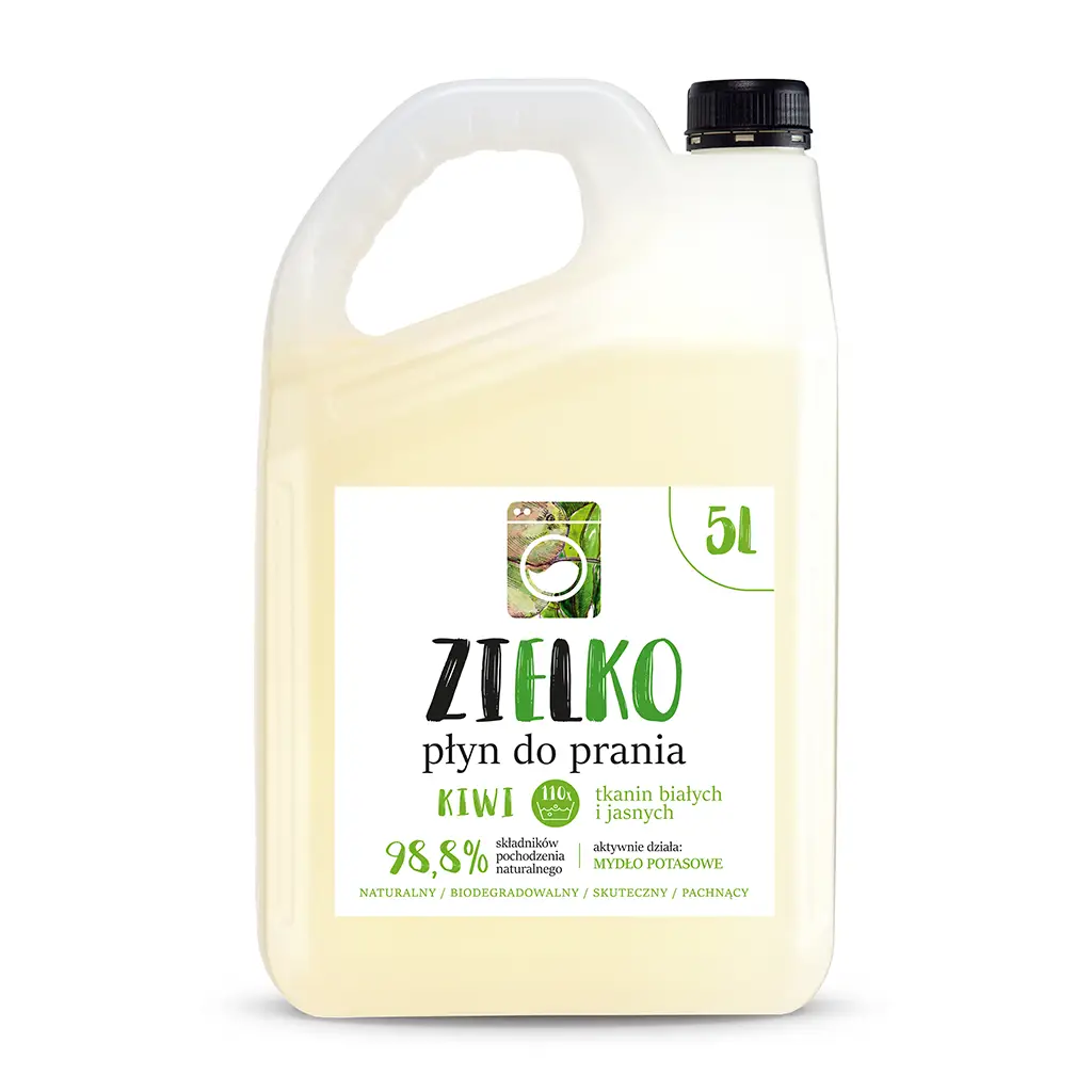 Naturalny płyn na bazie mydła potasowego dedykowany do prania średnio zabrudzonych tkanin białych i jasnych o delikatnym zapachu kiwi. Sprawdzona receptura oraz ekologiczny skład płynu pomagają usuwać plamy, nie niszcząc tkaniny. Został stworzony do stosowania zarówno podczas prania ręcznego oraz w pralce. Sprawia, że ubrania stają się czyste i przyjemne w dotyku. Skuteczne pranie w temperaturze 30°- 60°C.